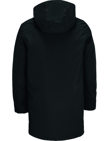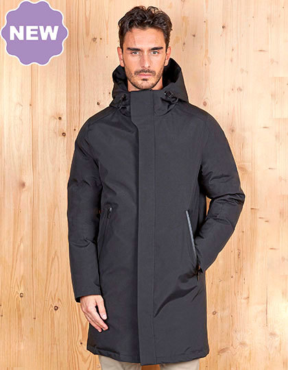 Vnější materiál: dvouvrstvý taft – 100 % recyklovaný polyester s TPU membránou, podšívka: taft – 100 % recyklovaný polyester 400T, polstrování: prachové peří – 100 % recyklovaný polyester | Pohodlný a neprůhledný střih | Podšitá kapuce se stahovacími šňůrkami, kovovými očky a gumovými zarážkami | Podlepené švy na kapuci, ramenou a rukávech | Hlavní otvor se vstřikovaným plastovým zipem s dvojitým kovovým jezdcem | Hlavní otvor se skrytou légou a magnetickým zapínáním na límci a lemu | Boční kapsy s vodoodpudivým převráceným zipem | Manžety s elastickou podšívkou | Uvnitř s načechranou prošívanou podšívkou | Hustá a pohodlná výplň | Vnitřní nakládaná kapsa s magnetickým zapínáním | Svislá vnitřní kapsa s neviditelným zipem na levé straně | Vnitřní zip na zadním lemu umožňuje přizpůsobení | Pruhy na vnější tkanině umožňují přizpůsobit si vnitřní část výstřihu.