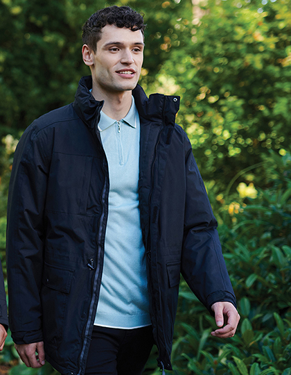 Nepromokavá polyesterová česaná tkanina Hydrafort 5000 | Odolná proti větru | Izolační vrstva Thermo-Guard | Podlepené švy | 160 g/m² izolační vycpávka těla | Skrytá kapuce se stahovacími šňůrami | Nastavitelné manžety | 2 dolní kapsy s ohřívači rukou na zip a 2 dolní kapsy cargo | Kapsa na mobilní telefon | Vnitřní bezpečná kapsa a náprsní kapsa na zip | Skrytý obšitý otvor v podšívce na zip.