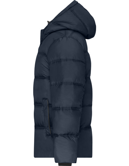 Prošívaný zimní kabát z recyklovaného polyesteru | Výplň Sugenro rozdělená do velkých komor | Dvě boční kapsy na zip | Obousměrný zip po celé délce | Dvě velké vnitřní kapsy | Nastavitelná kapuce na zip | Trojitě | prošívání | Vnitřní elastické manžety.