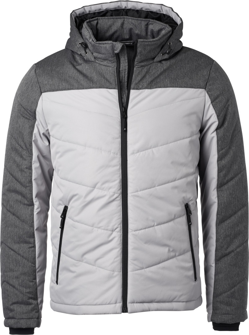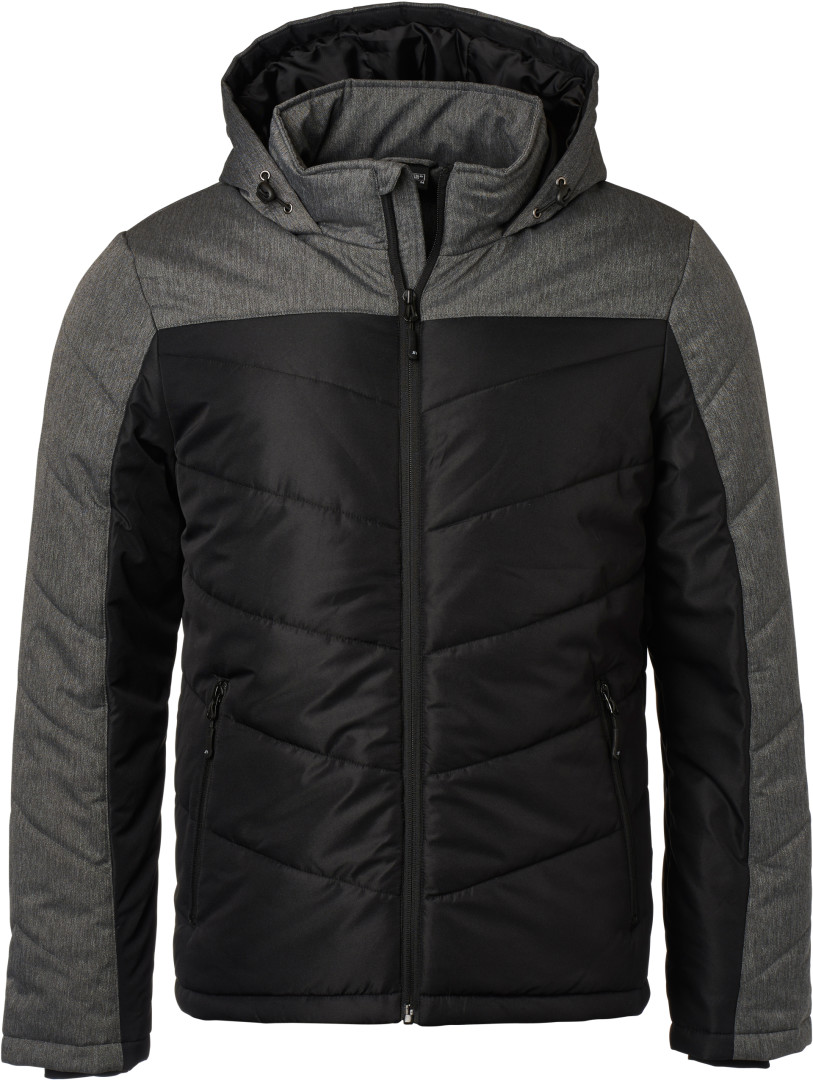 vnější materiál: 100% polyester, textilie 2: 100% polyester, podšívka: 100%, polyester, polstrování: 100% polyester větru a vodě odolná (1.500mm vodního sloupce), polstrovaná bunda v materiálovém mixu s prošívanými a dělicími švy, stojáček, nastavitelná kapuce, ochrana proti větru po celé délce, elastické vnitřní manžety, boční kapsy na zip, 1 vnitřní kapsa, uvnitř zip