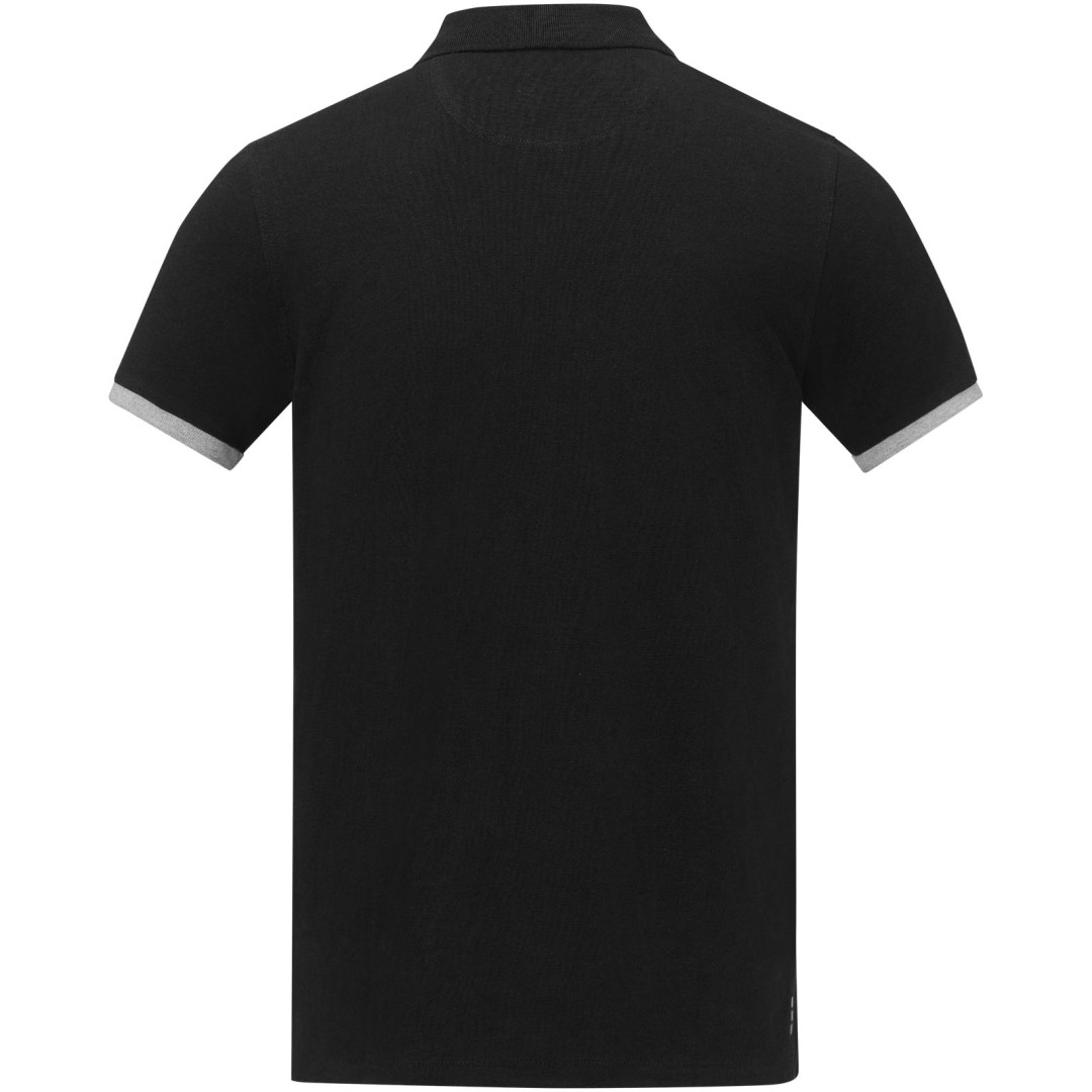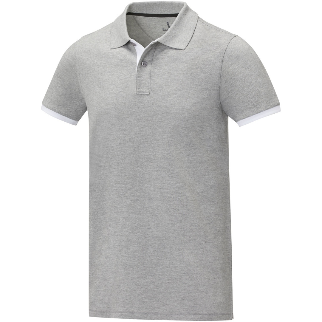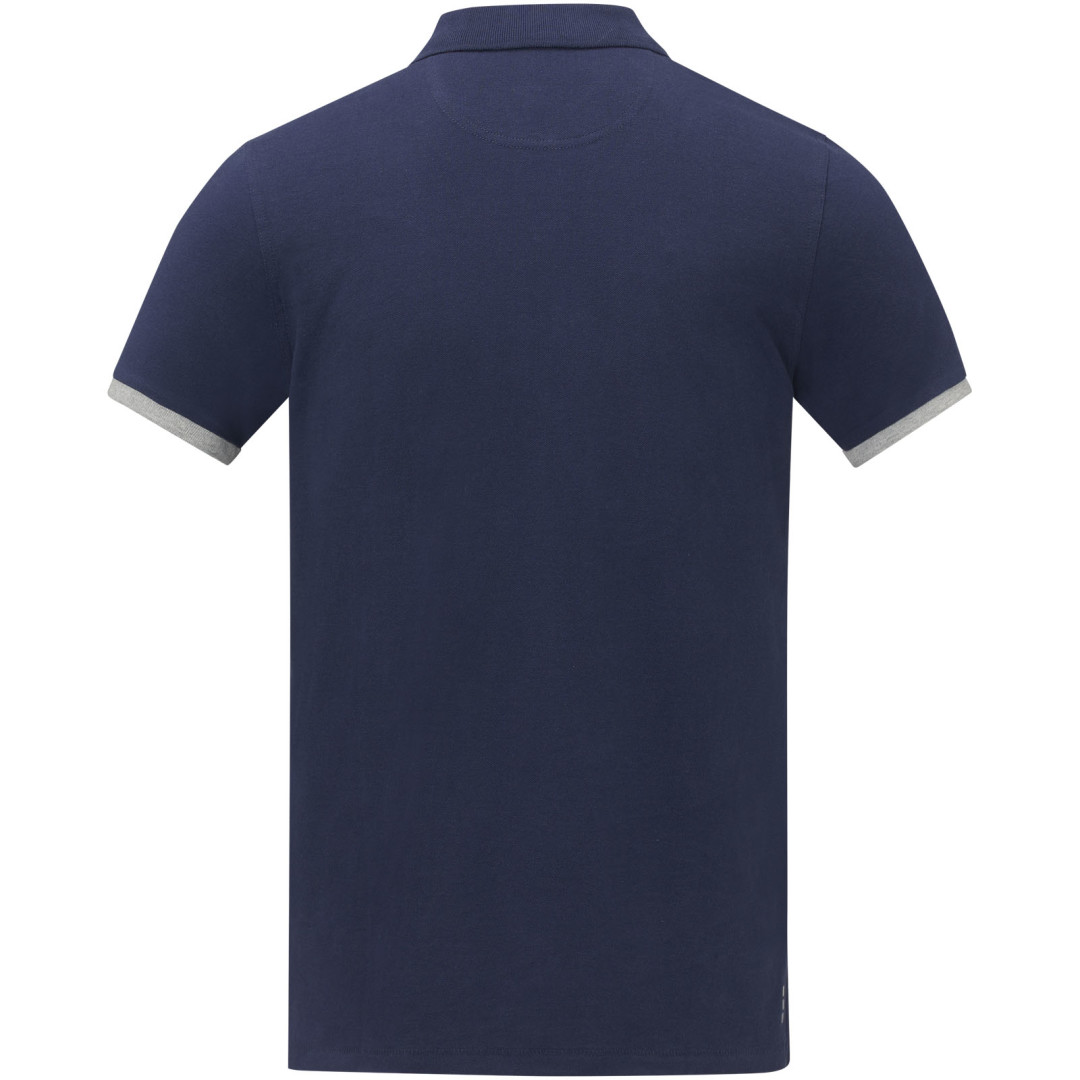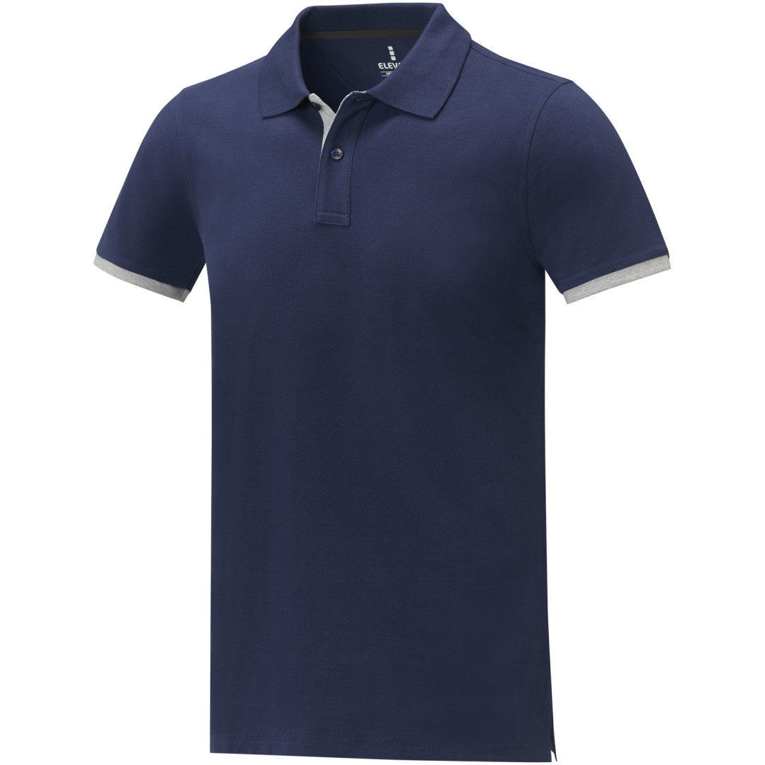 Plochý žebrový límeček. Žebrový úplet manžetek. Kontrastní barevná vnitřní léga a žebrované manžety. Zapínání na dva knoflíky. Detaily s vyšívacím stehem. Saténová lemovka výstřihu. Boční rozparky se saténovou lemovkou. Sedlo. Předsunutá zpevňující lemovka výstřihu s řetízkovým švem. Gravírované knoflíčky ve stejné barvě. Potisk štítku technologií heat transfer pro větší pohodlí. 200 g/m2