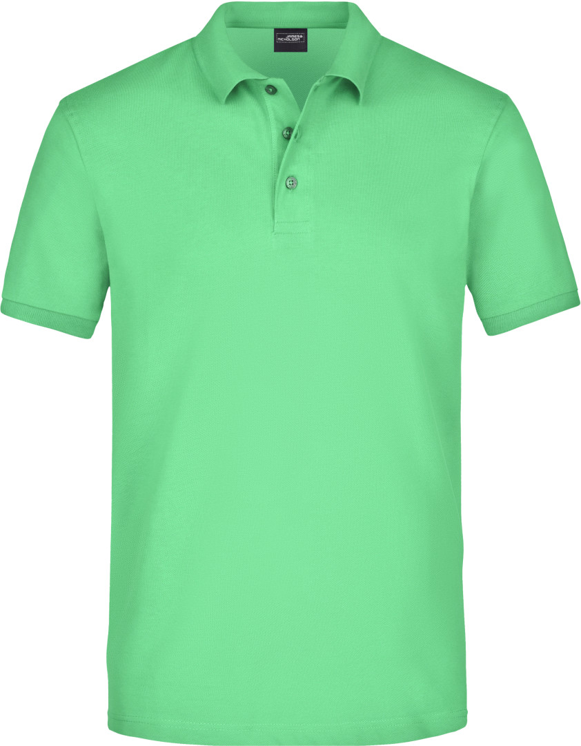 210g/m², 95% bavlna, 5% elastan klasický střih, límec úplet, léga s 3 knoflíky, úpletový lem rukávu, boční rozparky