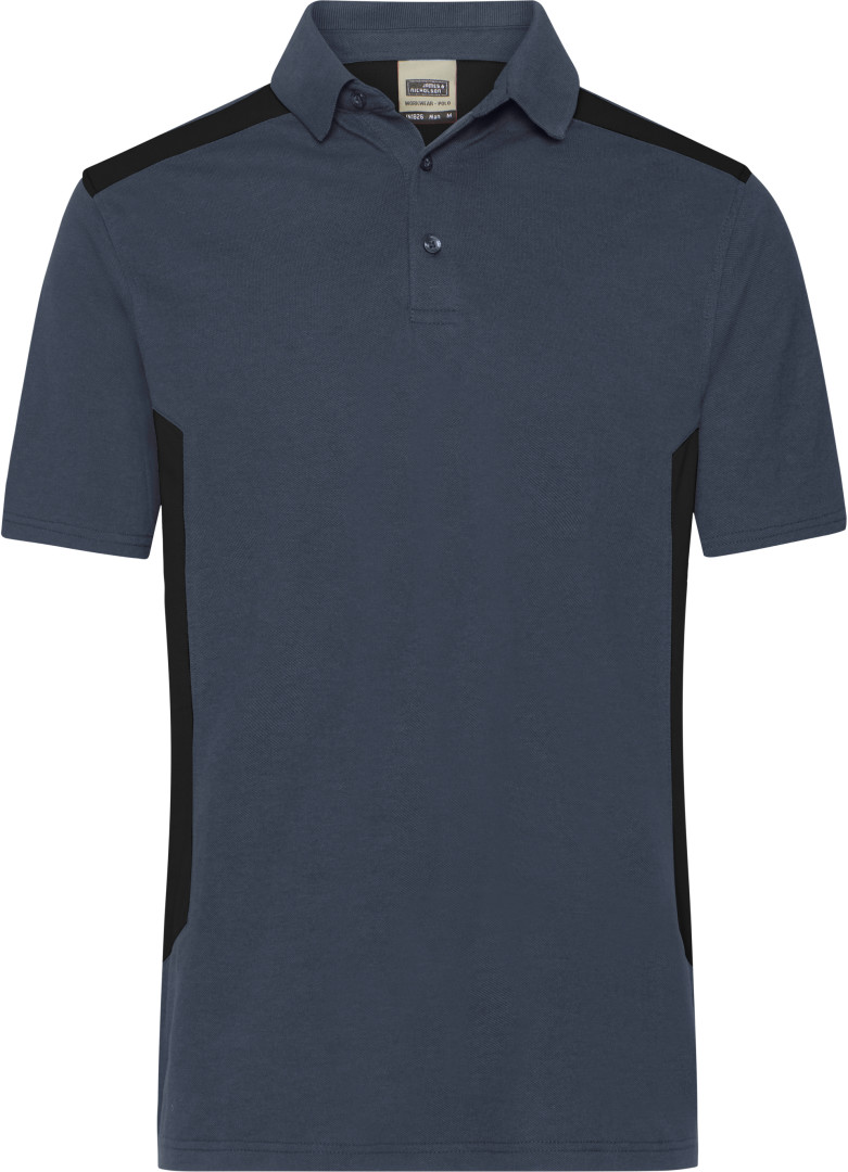 Pánské pracovní Polo tričko s pleteným límcem, 3 knoflíky na zapínání tón v tónu s tričkem, vsadky v kontrastní barvě na boku a ramenou. Lze prát na 60 °, vhodné k sušení v sušičce. Vyrobeno z 50% organické bavlny a 50% recyklovaného polyesteru.