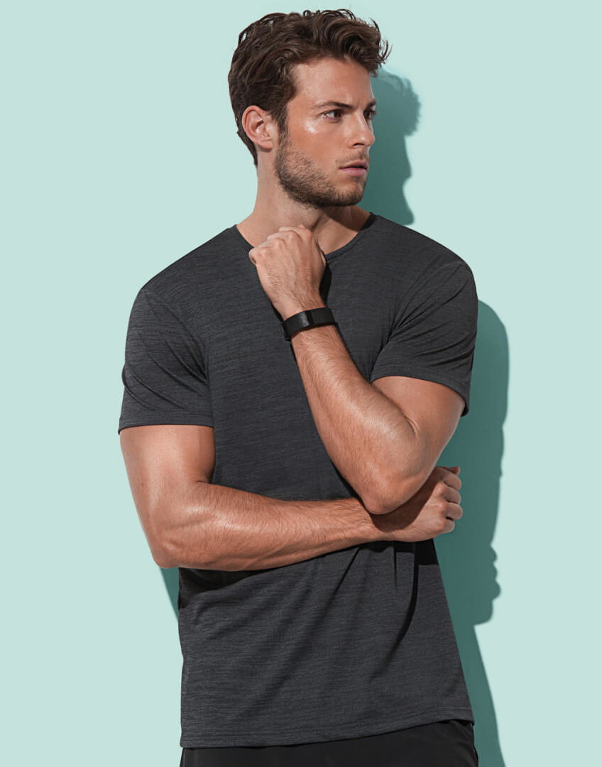 Gramáž: 140 g / m2 Materiál: 100% polyester (žakár, ACTIVE-DRY °)· Vzhled Heather (melírovaný) · tenký lem kolem krku z odpovídajícího materiálu · zpevňující pásek vzhledu na krku · dekoratíne...