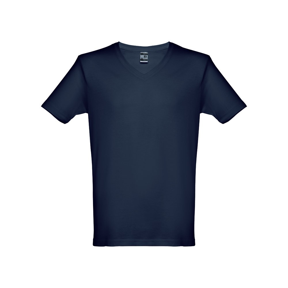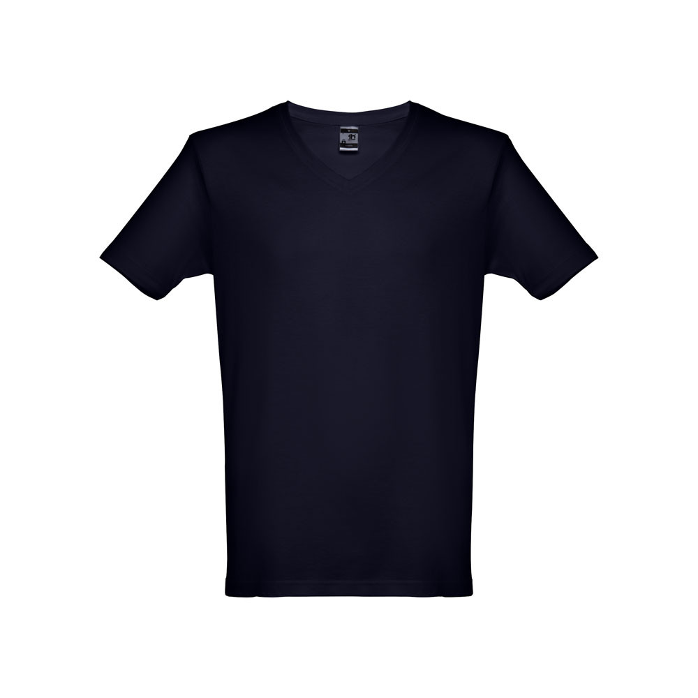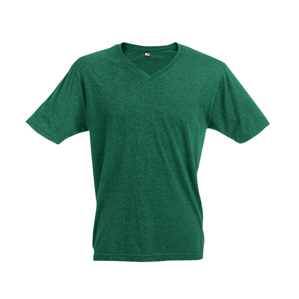 Pánské žerzejové tričko ze 100% bavlny (150 g/m²) tubulárního střihu. Barvy 94, 95 a 99: 60% bavlna a 40% polyester. Krátký rukáv. Výstřih do V. Vyztužené lemování. Žerzejový límec. Dvojité prošití na rukávech a spodním lemu.