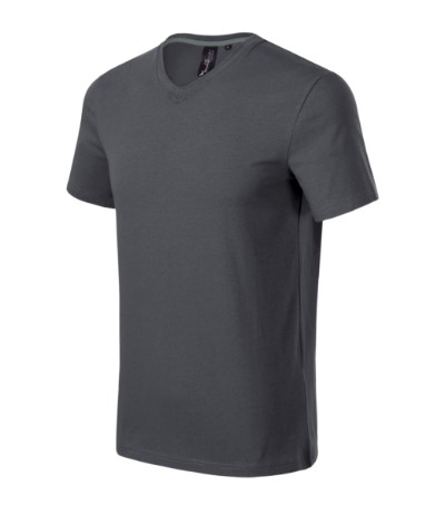 Single Jersey, 95 % bavlna, 5 % elastan, strečový materiál udržující stálost tvaru, přiléhavý střih s bočními švy, výstřih ve tvaru V, úzký lem průkrčníku z žebrového úpletu 1:1 s 5 % elastanu, vnitřní část průkrčníku začištěna kontrastní páskou, zpevnění ramenních švů páskou.