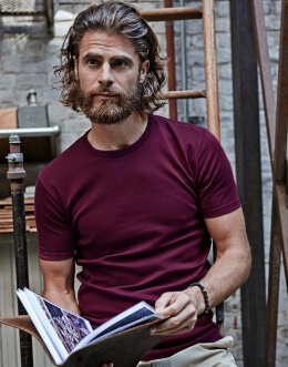 ·220 g/m2 ·100% česaná bavlna ring-spun ·bavlna s dlouhým vláknem, dvojí pěchování ·tričko bylo vypráno v enzymatické a v silikonové lázni, za účelem získání hladšího povrchu ·patent kolem krku s přídavkem lycry ·dvojité švy