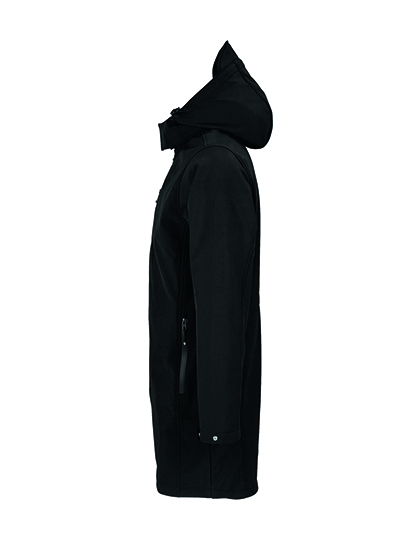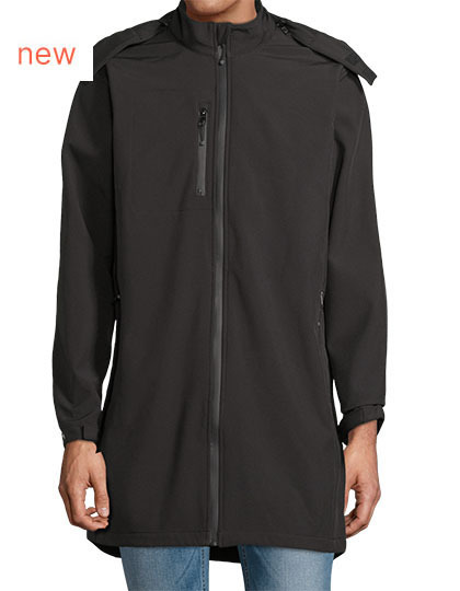 Softshell 270, recyklovaný polyester / elastan, fleecová podšívka: 100 % polyester | Vodotěsný 5 000 mm | 3 vrstvy | Otvor s nepromokavým dvojitým zipem | 2 boční kapsy, 1 kapsa na hrudi se zipy odolnými proti vodě | Odnímatelná kapuce na zip s kšiltem a stahovací šňůrkou | Manžety s možností úpravy na patentky | Nastavitelný pas | Bez štítku.