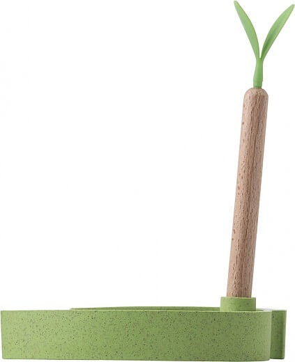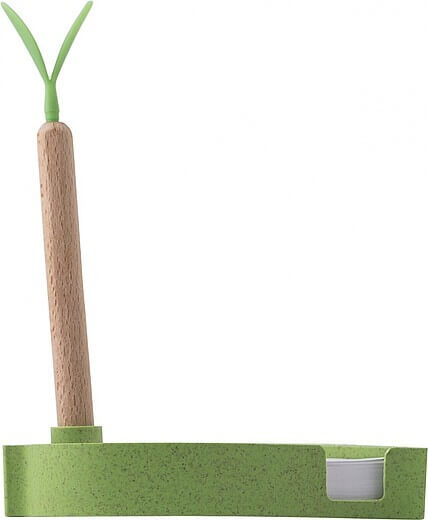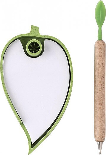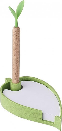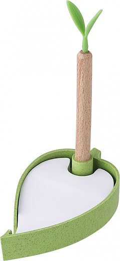 Papírový blok, 100 samolepících listů, s držákem a dřevěným kuličkovým perem a silikonovými listy. Černý inkoust.