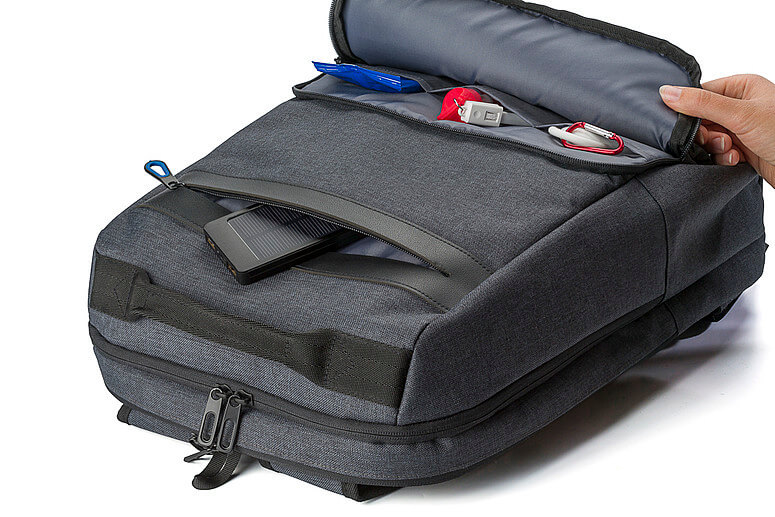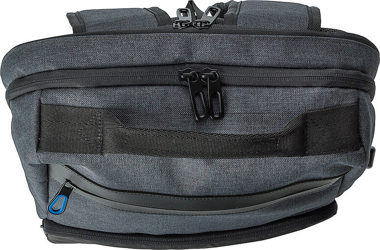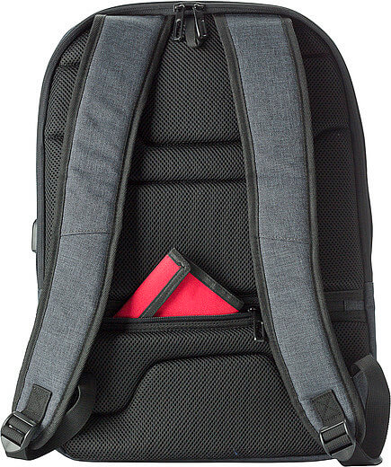 PVC batoh se dvěma hlavními přihrádkami, z nichž jeden je vhodný pro notebook (15 palců). Batoh má zadní kapsu proti krádeži a dvě přední kapsy na zip. S polstrovanými, nastavitelnými ramenními popruhy.