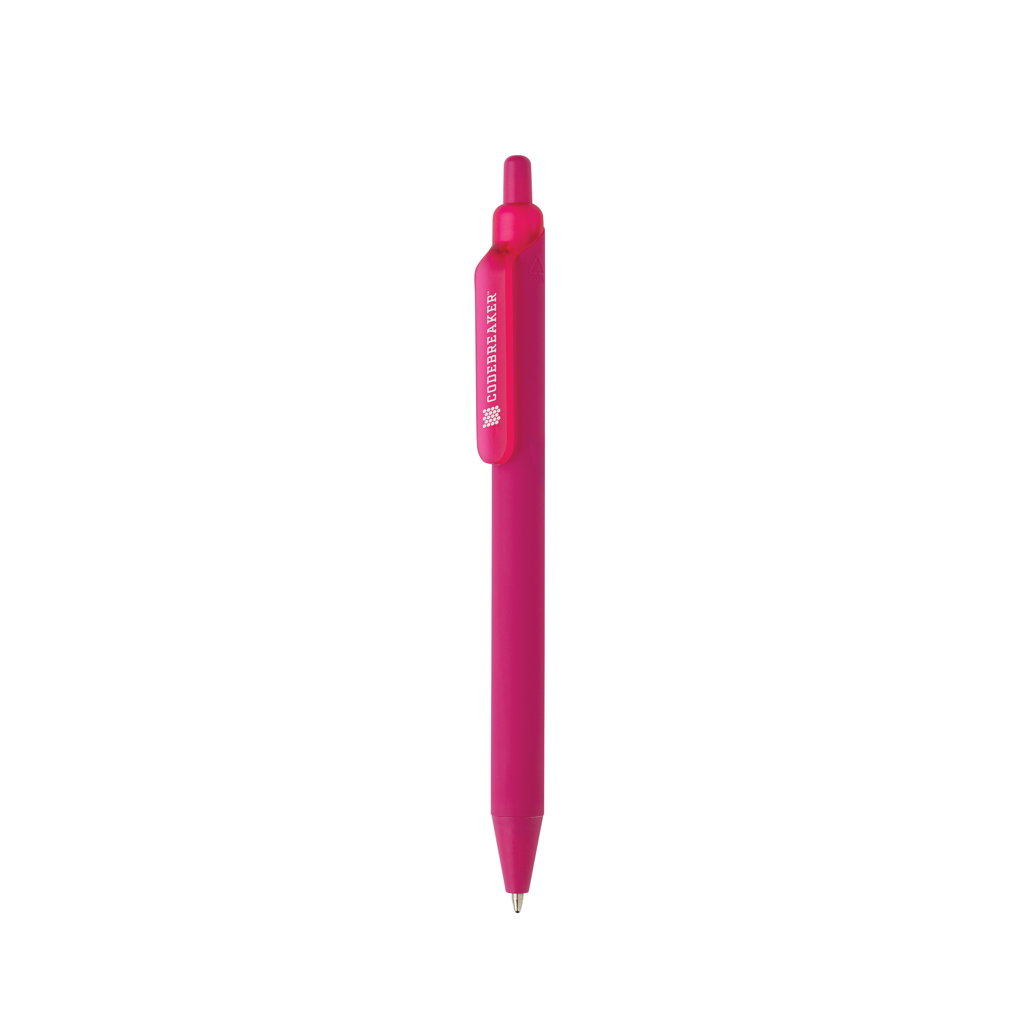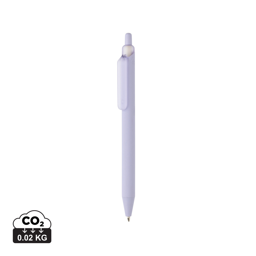 Pero je vyrobeno z 91 % recyklovaného ABS a kombinuje odolnost se stylem. Je vybaven hladkou pogumovanou silikonovou rukojetí pro větší pohodlí. Matná povrchová úprava klipu a hrotu dodává elegantní vzhled, zatímco modrý inkoust vydrží až 1 200 metrů. Pero se ovládá pomocí klikacího mechanismu.