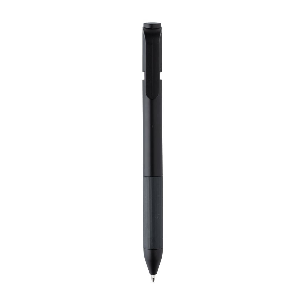 Pero TwistLock s originálním otáčecím systémem, který bezpečně uzamkne hrot pera a zabrání tak nechtěným skvrnám nebo popsání inkoustem. Vyrobené z GRS recyklovaných materiálů. GRS (Global Recycle Standard) je globální standard, který umožňuje ověřit použití recyklovaného materiálu v produktu napříč celým dodavatelským řetězcem. Celkový podíl recyklátu dle váhy produktu: 67 %. Kvalitní německá modrá náplň Dokumental® s TC-kuličkou pro mimořádně příjemné psaní až 1 200 m textu.