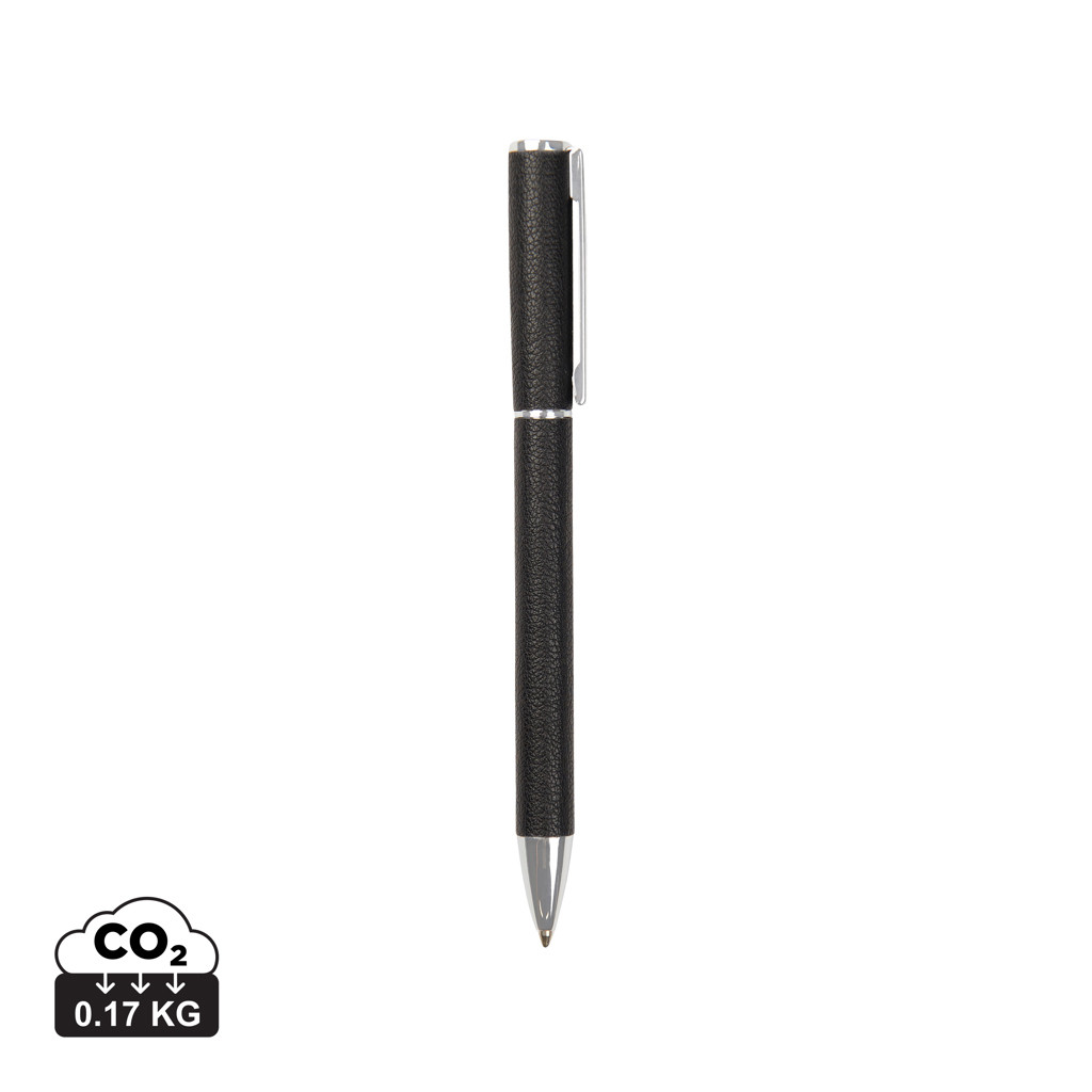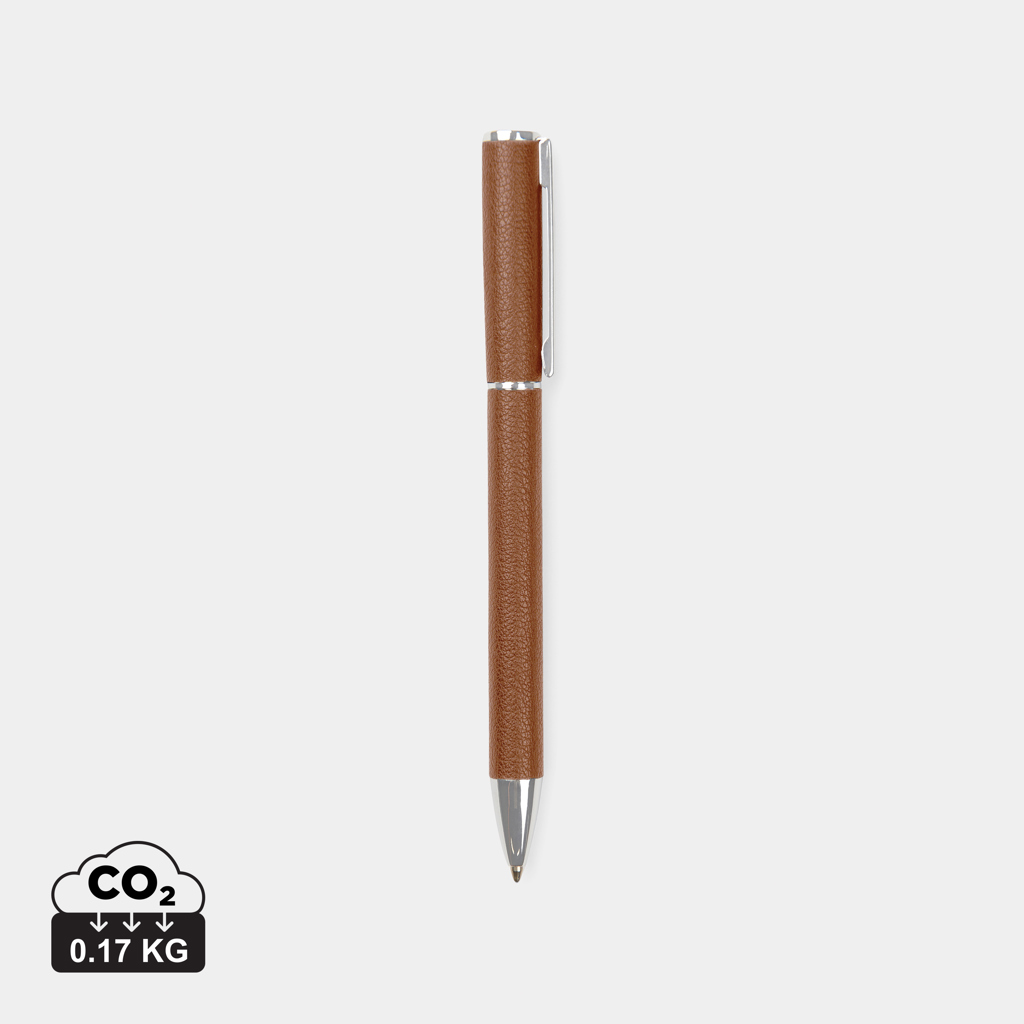 Elegantní pero s modrým inkoustem, které přináší délku psaní až 1200 metrů a šířku psaní 1,0 mm. Vyrobeno z recyklovaného hliníku, mosazných komponentů a PU materiálu. Řada Timo nabízí minimalistické kancelářské doplňky vyrobené z recyklovaných materiálů s certifikací RCS. RCS certifikace zajišťuje garanci použití recyklovaného materiálu díky transparentnímu přehledu nad dodavatelským řetězcem. Tento produkt obsahuje 27% recyklovaného hliníku s certifikací RCS.