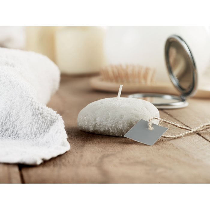 Svíčka ve tvaru kamene. V dárkové lepenkové krabičce.