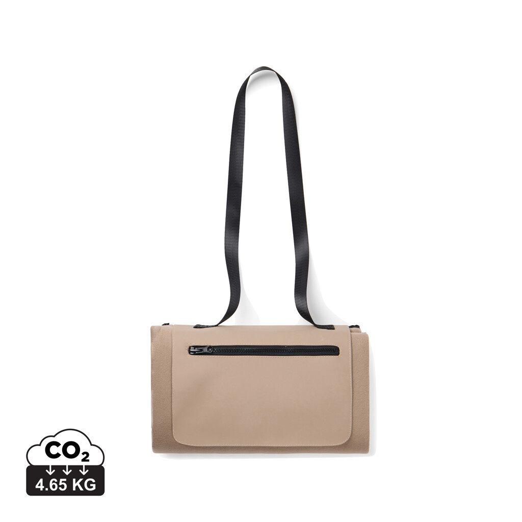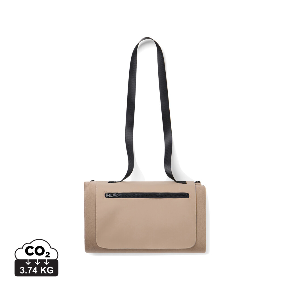 Vezměte s sebou piknikovou deku Baltimore. Deka má měkký fleecový povrch pro maximální pohodlí a voděodolnou spodní vrstvu z PEVA, která chrání před vlhkostí a chladem. Vybavena dlouhým popruhem pro snadné nošení a praktickou přední kapsou na zip na klíče, telefon nebo jiné drobnosti. Velikost: 150x130 cm. Certifikováno podle RCS (Recycled Claim Standard), což zaručuje, že celý dodavatelský řetězec recyklovaných materiálů je certifikován. Celkový podíl recyklovaného materiálu je založen na celkové hmotnosti produktu. Tento produkt obsahuje 47% RCS-certifikovaného recyklovaného polyesteru.