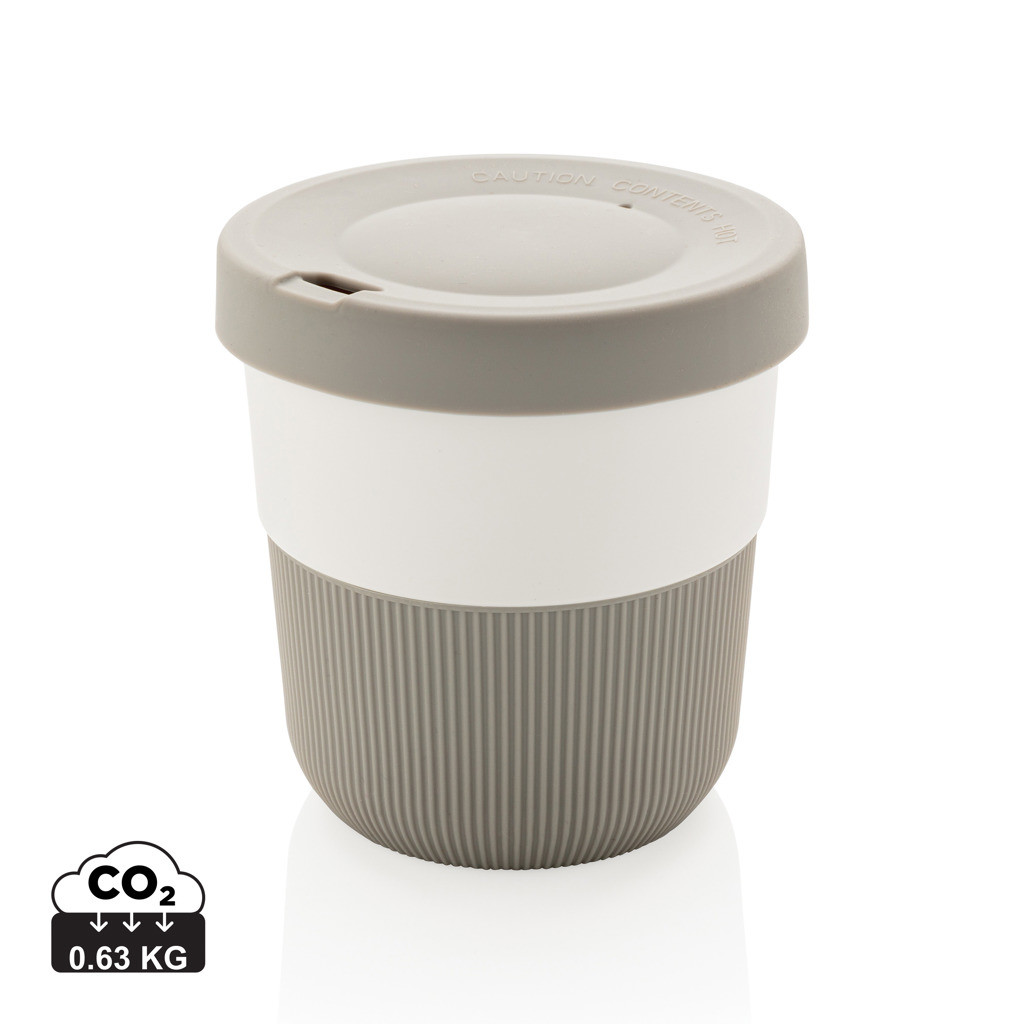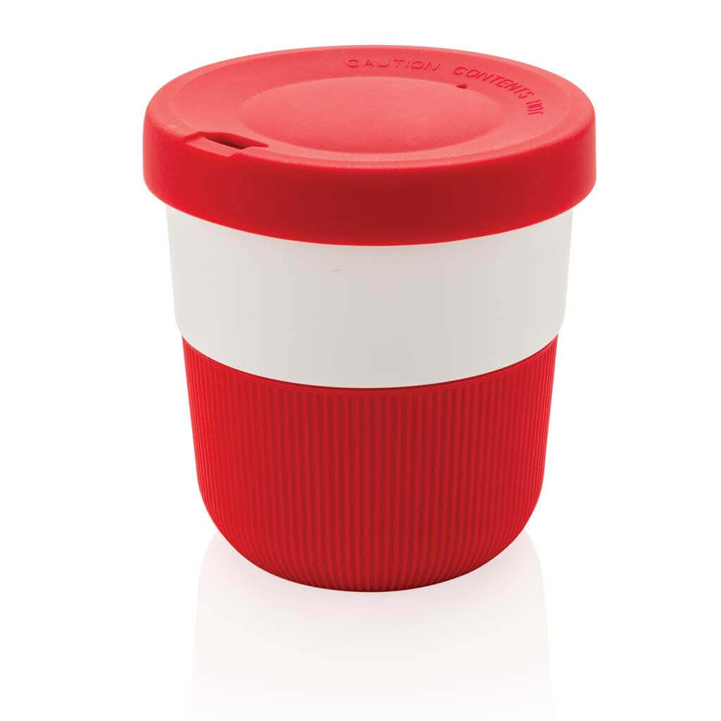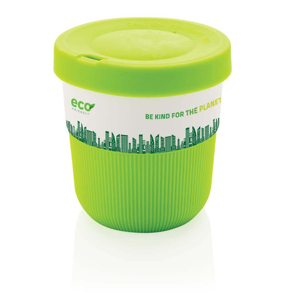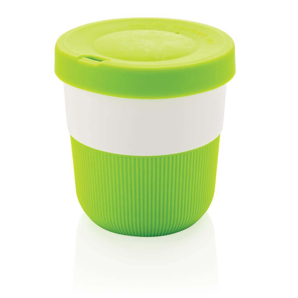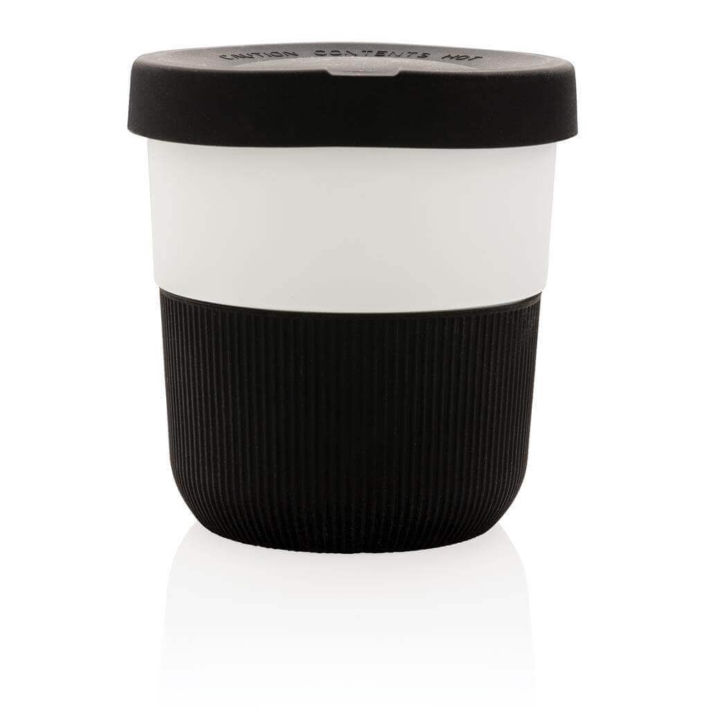 Ekologická alternativa k tradičním jednorázovým kelímkům pro přenos horkých nápojů. Vyrobený z rostlinných materiálů (PLA) se silikonovým úchopem zabraňujícím popálení. Pasuje pod většinu kávovarů. Bezpečný až do 100 °C, 100 % bez melaminu. Objem: 280ml. PMS color 1: Black PMS color 1: Cool Grey 6 PMS color 1: 186C PMS color 1: 2146C PMS color 1: 367