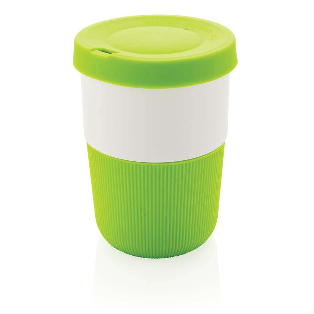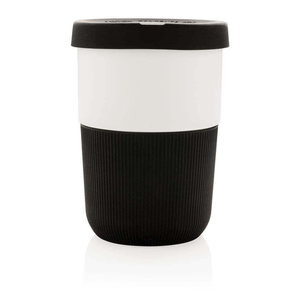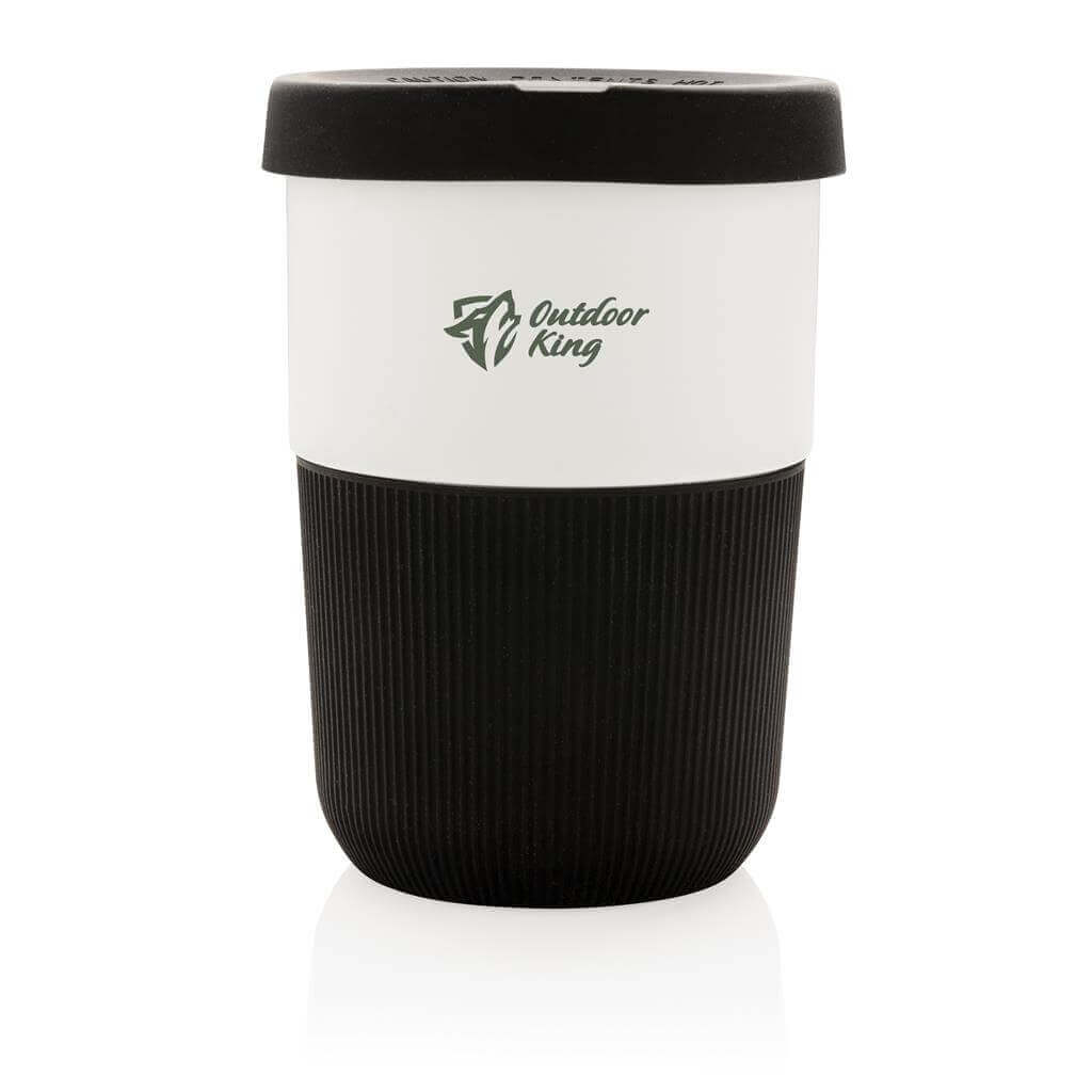 Ekologická alternativa k tradičním jednorázovým kelímkům pro přenos horkých nápojů. Vyrobený z rostlinných materiálů (PLA) se silikonovým úchopem zabraňujícím popálení. Bezpečný až do 100 °C, 100 % bez melaminu. Objem: 380ml. PMS color 1: Black PMS color 1: Cool Grey 6 PMS color 1: 186C PMS color 1: 2146C PMS color 1: 367