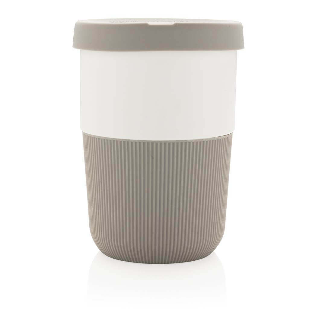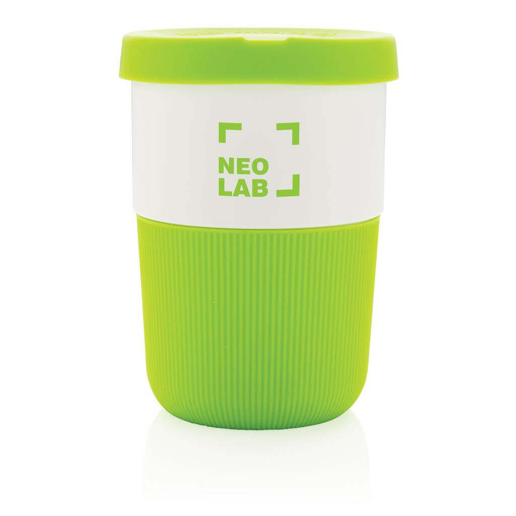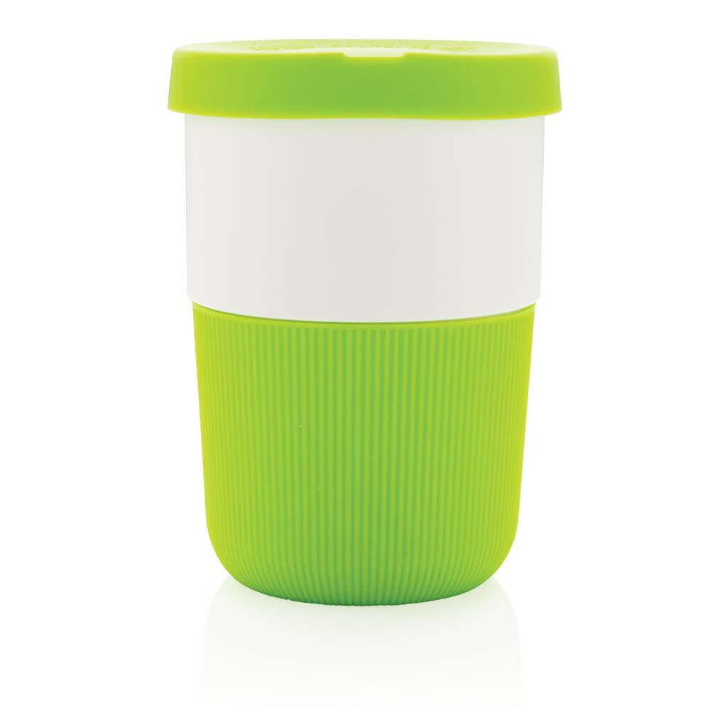 Ekologická alternativa k tradičním jednorázovým kelímkům pro přenos horkých nápojů. Vyrobený z rostlinných materiálů (PLA) se silikonovým úchopem zabraňujícím popálení. Bezpečný až do 100 °C, 100 % bez melaminu. Objem: 380ml. PMS color 1: Black PMS color 1: Cool Grey 6 PMS color 1: 186C PMS color 1: 2146C PMS color 1: 367