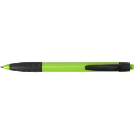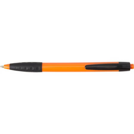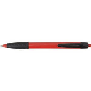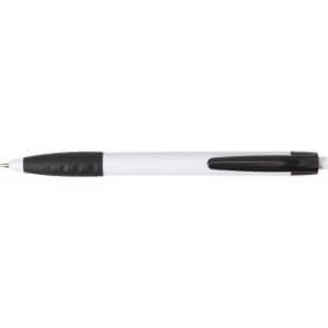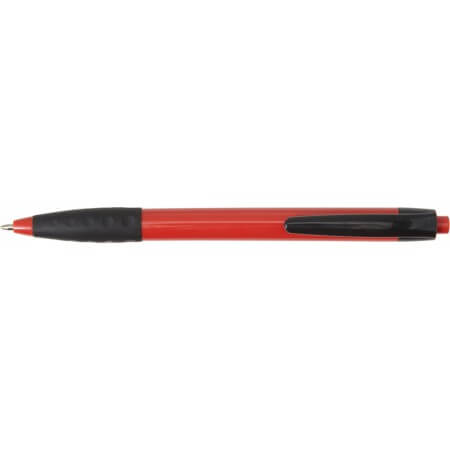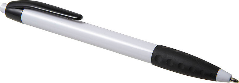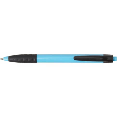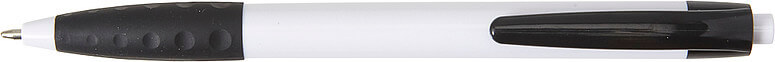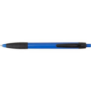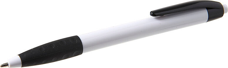 Plastové kuličkové pero s černou sponou a černým gumovým držadlem. Modrý inkoust.