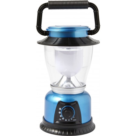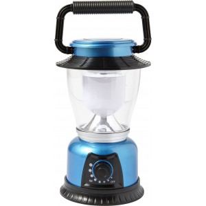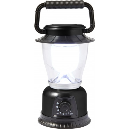 Plastové kempovací světlo s LED diodami a velkým knoflíkem pro nastavení jasu světla. Baterie v ceně.