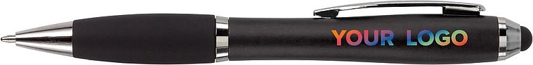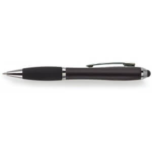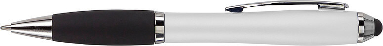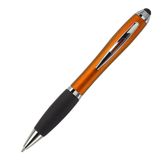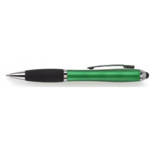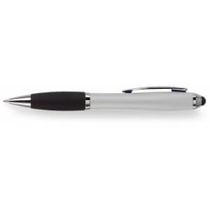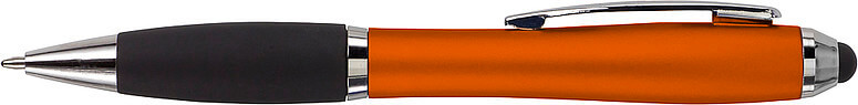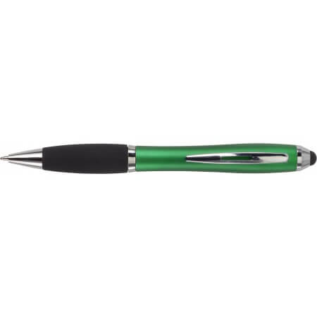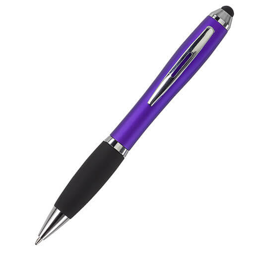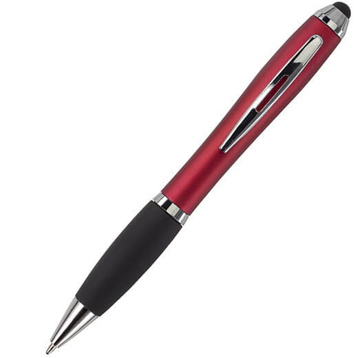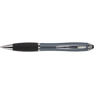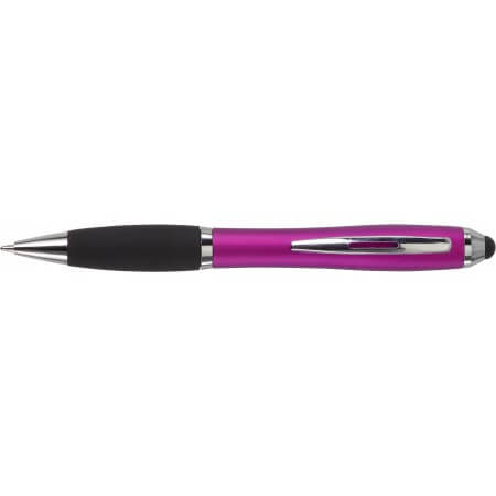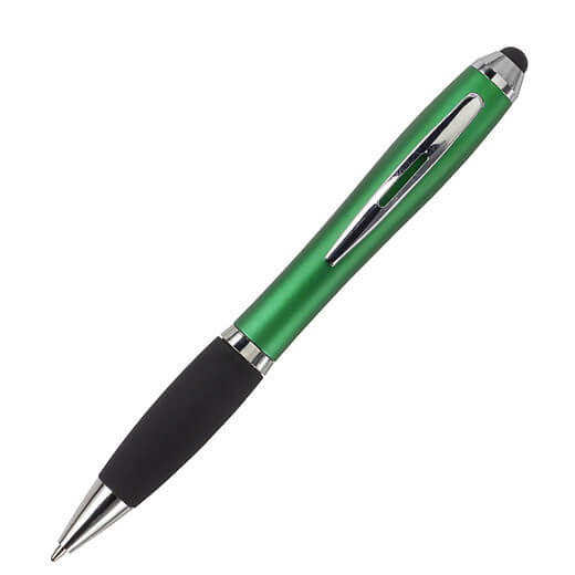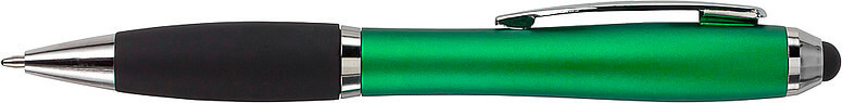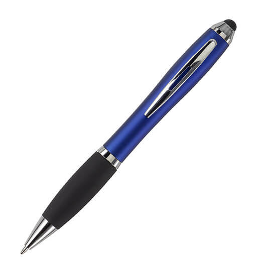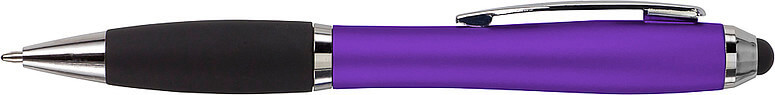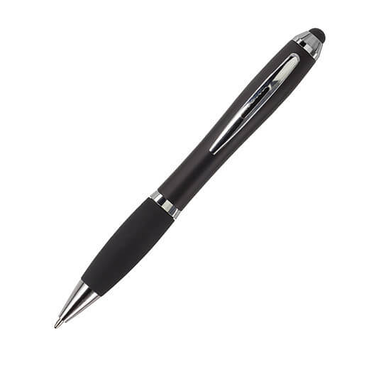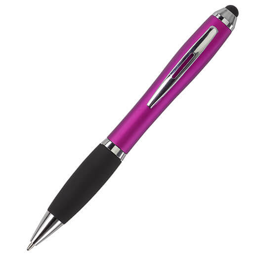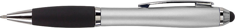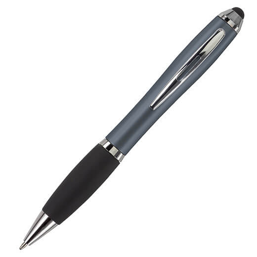Kuličkové pero s koncem vhodným na dotykové displeje. Kuličkové pero s plastovým matným barevným tělem a gumovým černým úchopem. Doplňky jsou lesklé stříbrné. Obsahuje černou náplň. Horní konec pera je gumový a vhodný pro dotykové displeje. Rozměr: průměr 1,3 x 13,3 cm.
