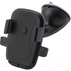 Plastový nastavitelný držák mobilního telefonu v autě, s velkou přísavkou ve spodní části pro upevnění na palubní desku nebo okno. Konzoly se mohou roztahovat na 8,1 cm, když je tlačítko stisknuto, konzoly se zatáhnou.