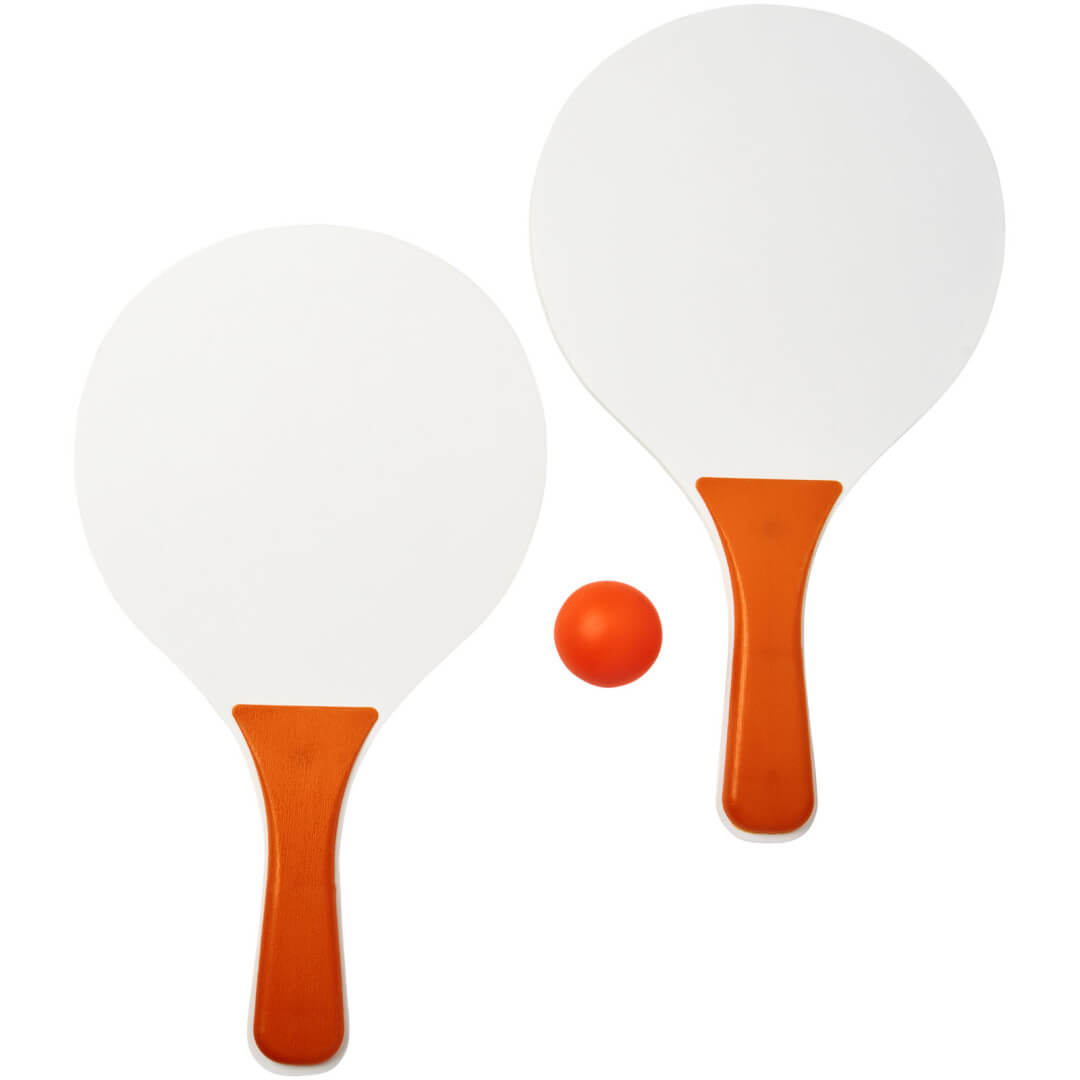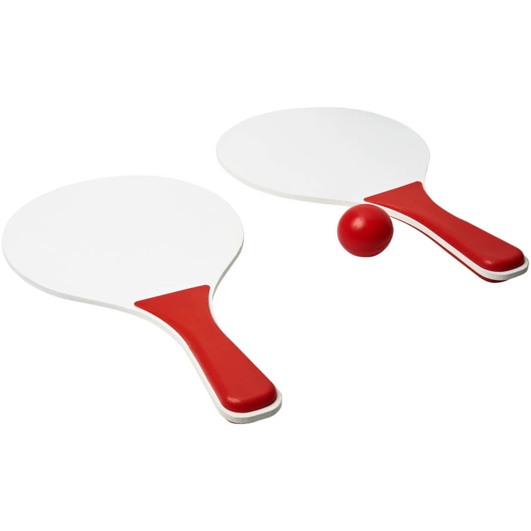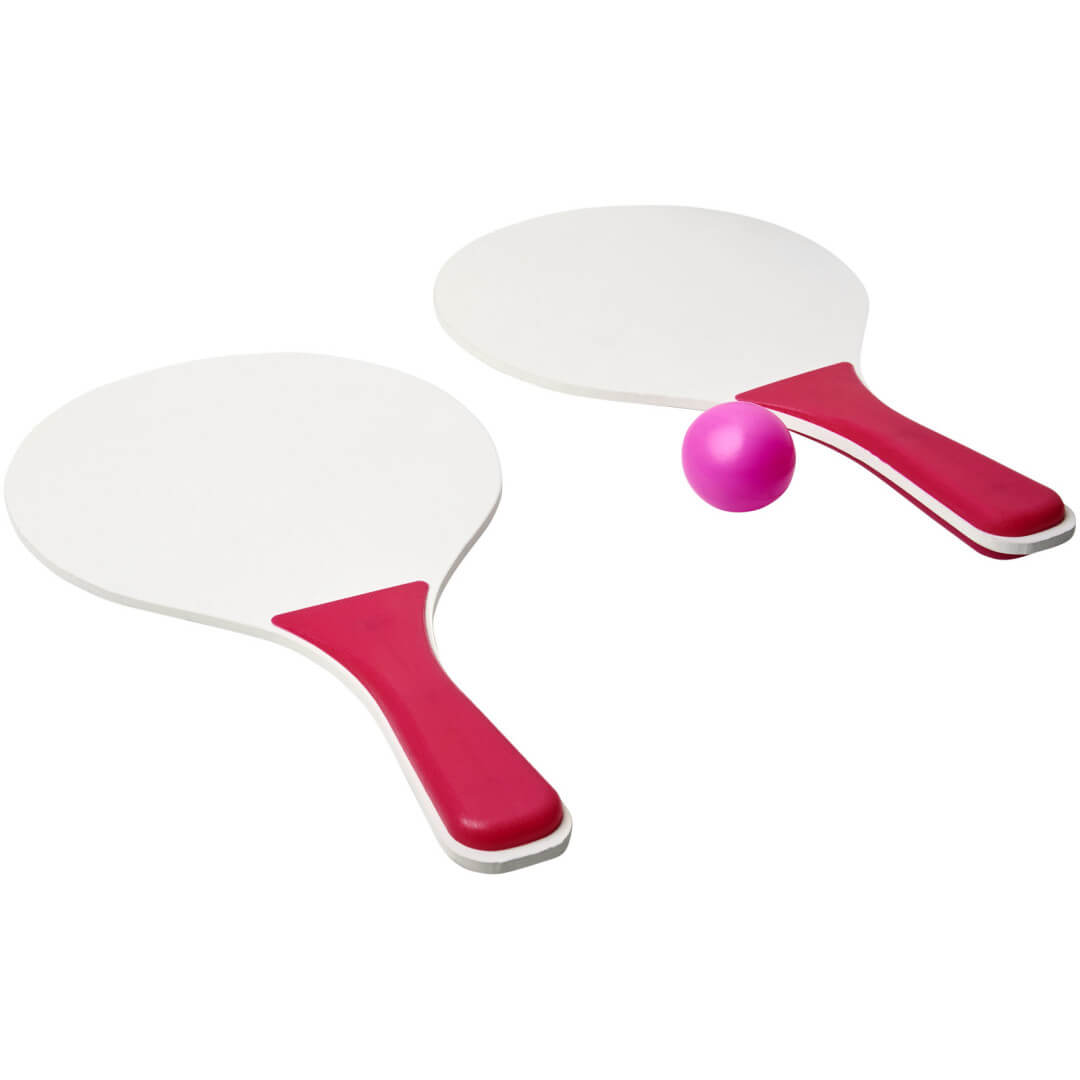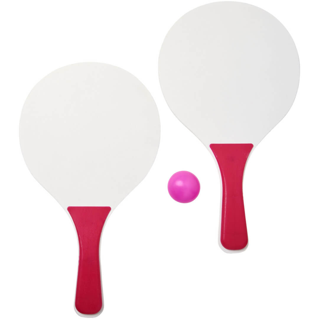 Bounce plážová herní sada. S touto plážovou herní sadou, kterou nabízíme v různých barevných provedeních, zažijete spoustu zábavy. Tato odolná plážová herní sada je vyrobena z desek MDF, držadla jsou vyrobena z barveného PP. Výrobek je dodáván spolu s měkkým míčem stejné barvy v síťovém obalu, který umožňuje snadné přenášení a manipulaci na pláži. MDF.