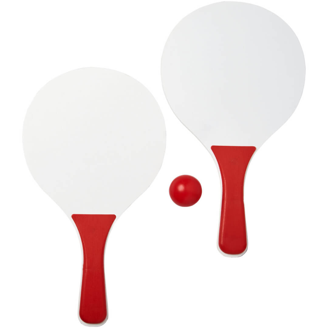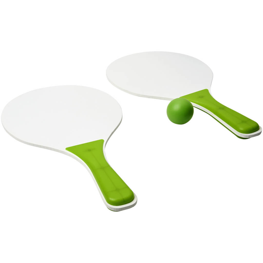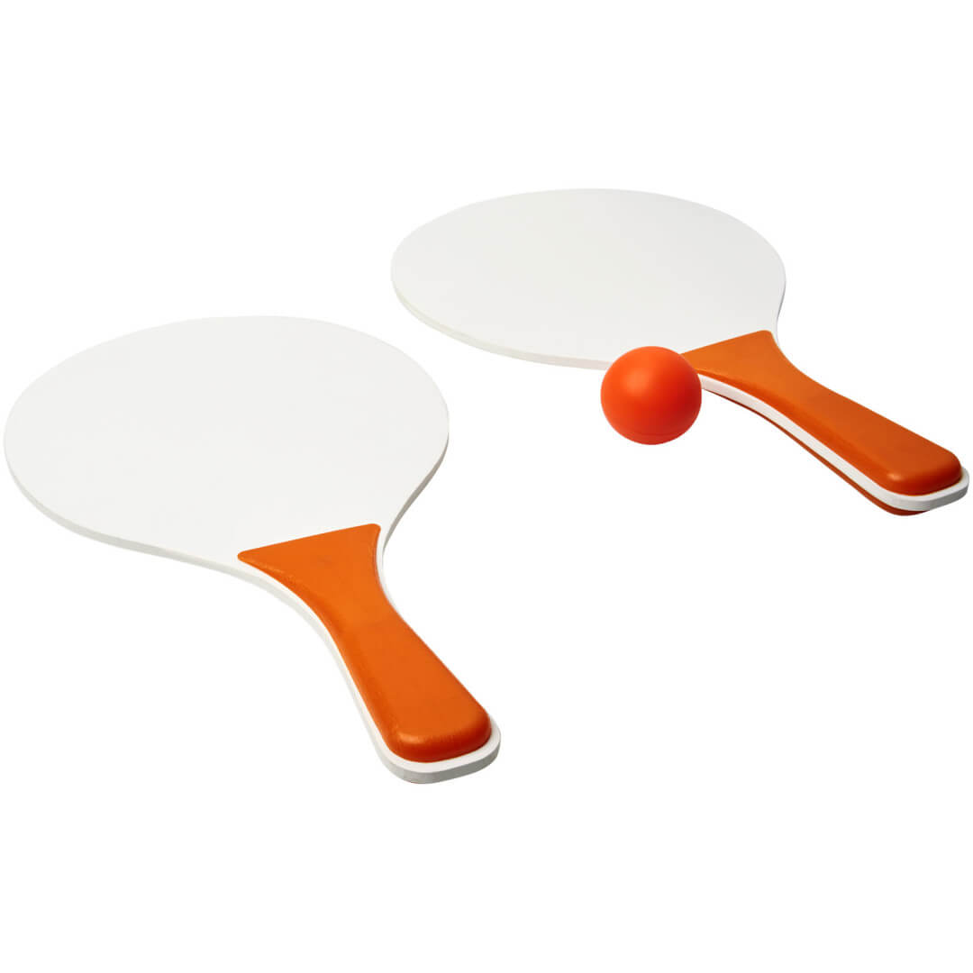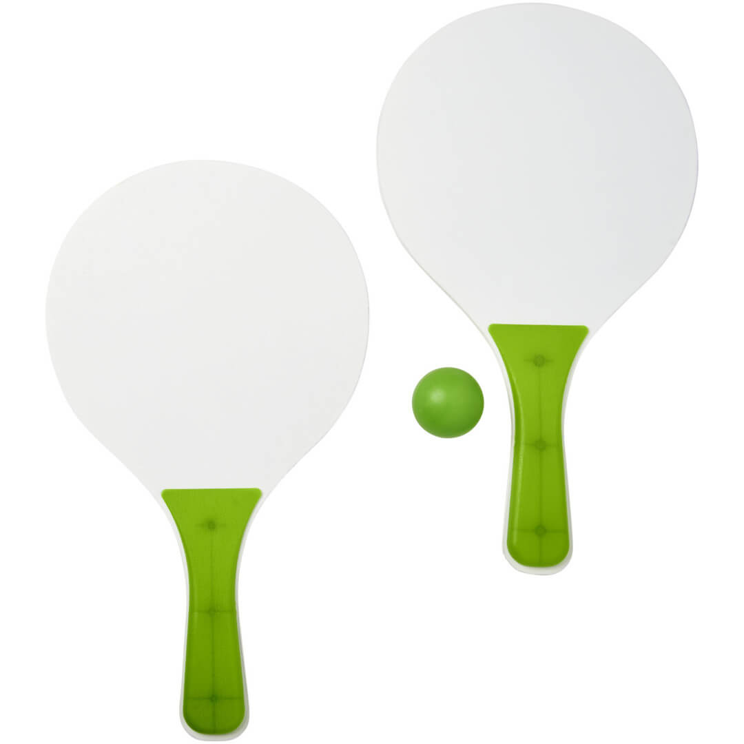 Bounce plážová herní sada. S touto plážovou herní sadou, kterou nabízíme v různých barevných provedeních, zažijete spoustu zábavy. Tato odolná plážová herní sada je vyrobena z desek MDF, držadla jsou vyrobena z barveného PP. Výrobek je dodáván spolu s měkkým míčem stejné barvy v síťovém obalu, který umožňuje snadné přenášení a manipulaci na pláži. MDF.