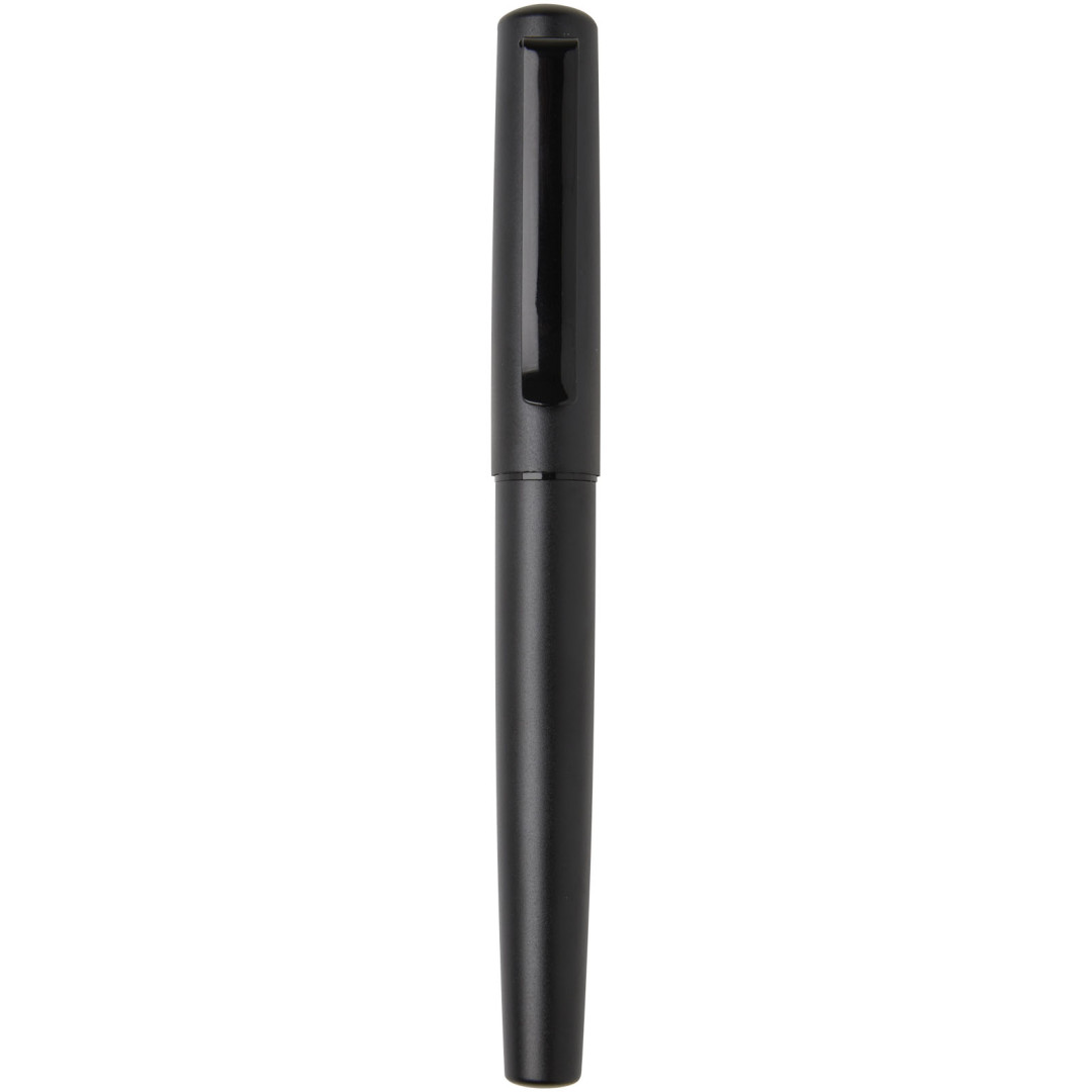 Plnicí pero s tělem z recyklovaného hliníku s matným černým povrchem a černým úchopem z recyklovaného hliníku. Hliník je recyklovatelný materiál. Výběrem tohoto pera můžete podpořit udržitelnější výrobní postupy a dát nový život vyřazeným hliníkovým materiálům. Toto stylové plnicí pero slouží jako praktická a udržitelnější varianta pro jednotlivce a organizace, kteří hledají psací potřeby šetrné k životnímu prostředí. Dodává se s jednou náplní a černou dárkovou krabičkou. Velikost krabičky: 16,8 × 4,2 × 2,5 cm.