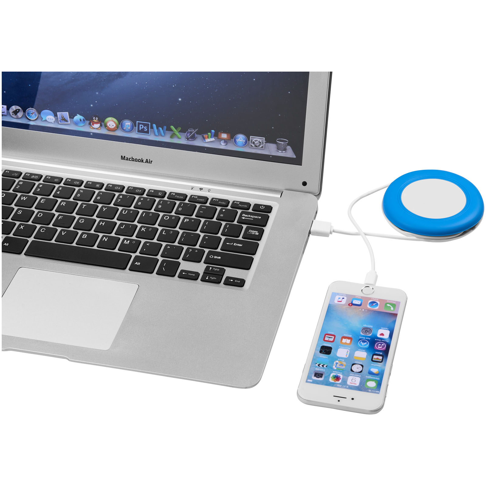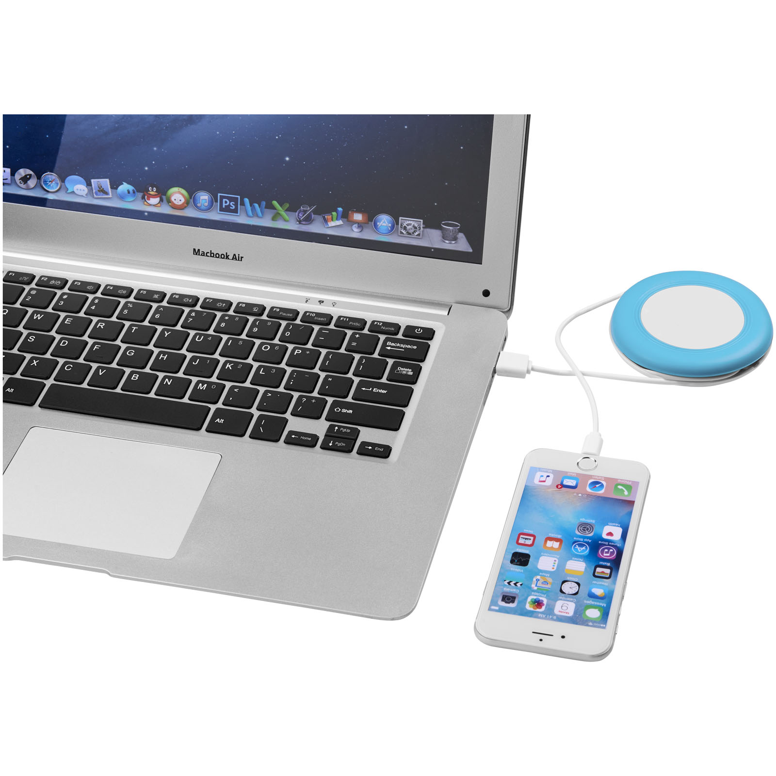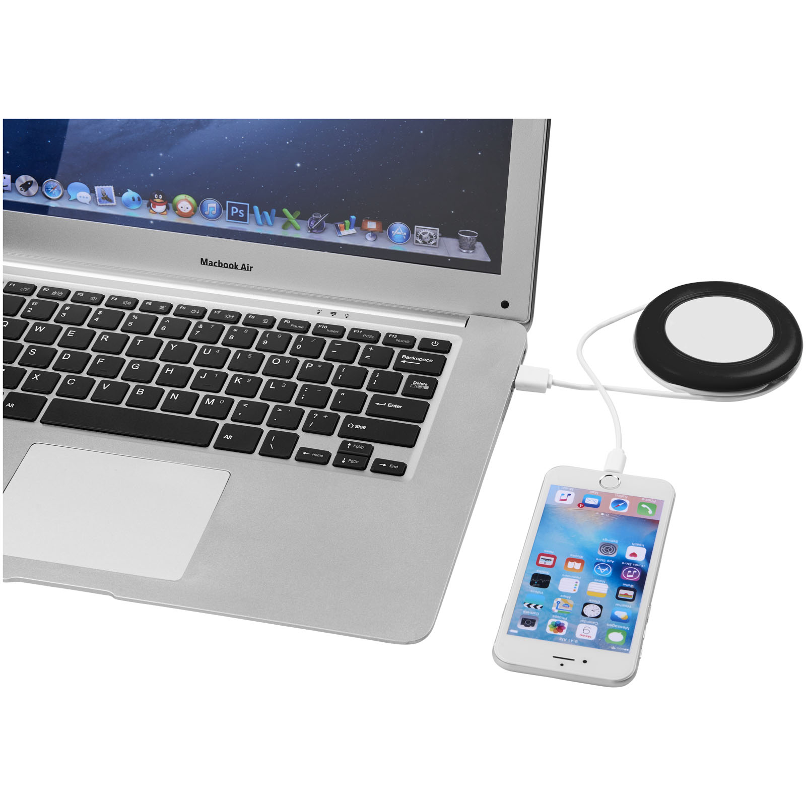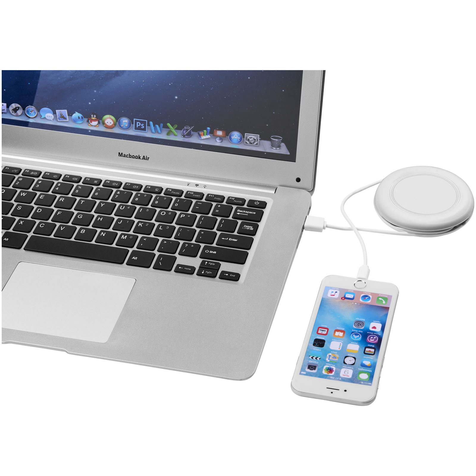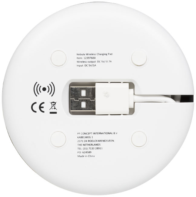 Podložka Nebula k bezdrátovému nabíjení Vám umožní nabít chytrý telefon bez kabelů. Současně můžete nabíjet telefony zabudovaným kabelem 2-v-1 baleným v silikonovém obalu. Kabel 2-in-1 je kompatibilní s přístroji Apple® iOS i Android. Podporuje bezdrátové nabíjení až do 1A u přístrojů, které mají funkci bezdrátového nabíjení. U přístrojů, které funkci bezdrátového nabíjení nepodporují, je nutný externí přijímač pro bezdrátové nabíjení nebo kryt s přijímačem. ABS plast.