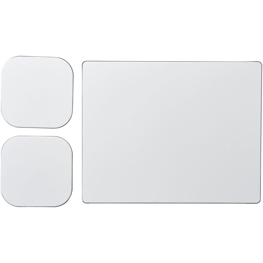 Podložka pod myš Brite-Mat® a sada tácků combo 3. Dodáváno s podložkou pod myš Brite-Mat a sadou odpovídajících tácků. Sada se skládá z obdélníkové podložky pod myš (0,3 x 19 x 24 cm) a dvou čtvercových tácků (0,3 x 9,5 x 9,5cm). Recyklovaný plast, lesklý papír a černá předsměs.