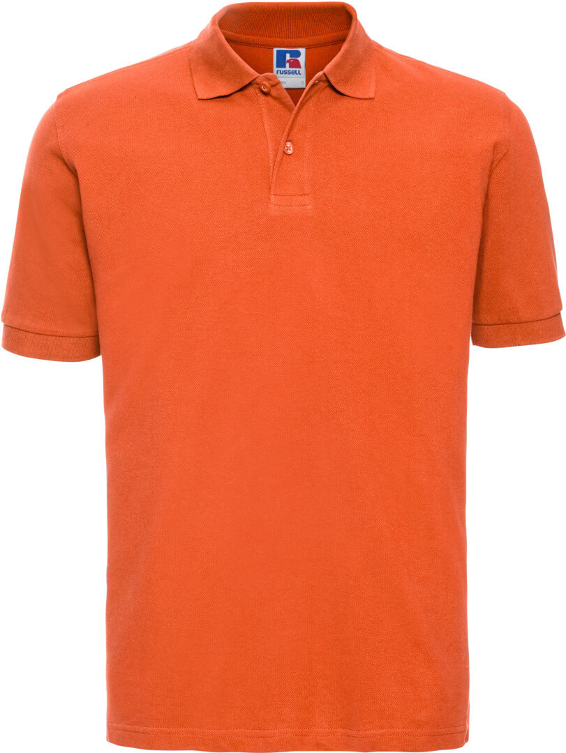 200g/m², 100% bavlna úpletový límeček, léga se 2 barevnými knoflíky, zesílené stehy na ramenou, rukáv bez úpletu, na okrajích rukávů a výstřihu zdvojený šev, boční rozparky, náhradní knoflík