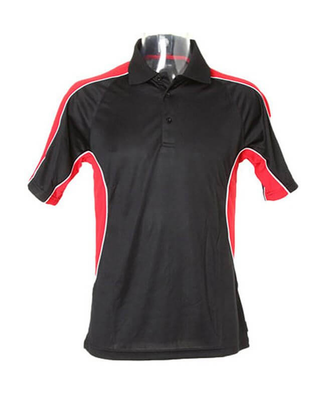 ·140 g/m² ·100% polyester ·odvádí vlhkost ·1x1 plochý pletený límec ·léga se 3 knoflíky ·štítek gamegear/cooltex natištěný vzadu na vnitřní straně ·kontrastní panel na rukávech, v podpaží a na bocích s bílým lemováním ·tkaný štítek cooltex na vnější straně švu