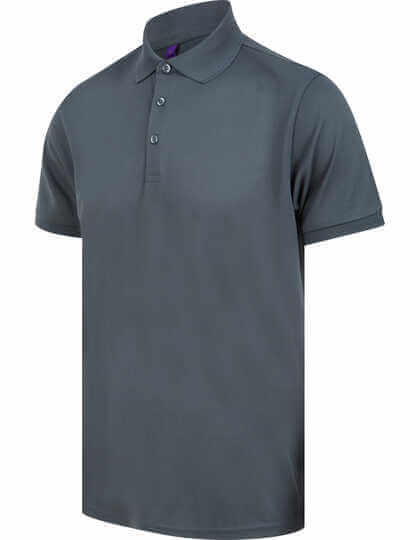 100 % recyklovaný polyester piké | Vyrobeno z recyklovaného polyesteru | Dvouvrstvý materiál piké | Normální střih se zapínáním na 3 knoflíky | 1x1 žebrovaný límec | Stojáček Henbury | Žebrované manžety | Barevně sladěné knoflíky | Funkce odvádění vlhkosti | Odstřihnutelný štítek Henbury a štítek s velikostí | Vhodné pro sublimační tisk