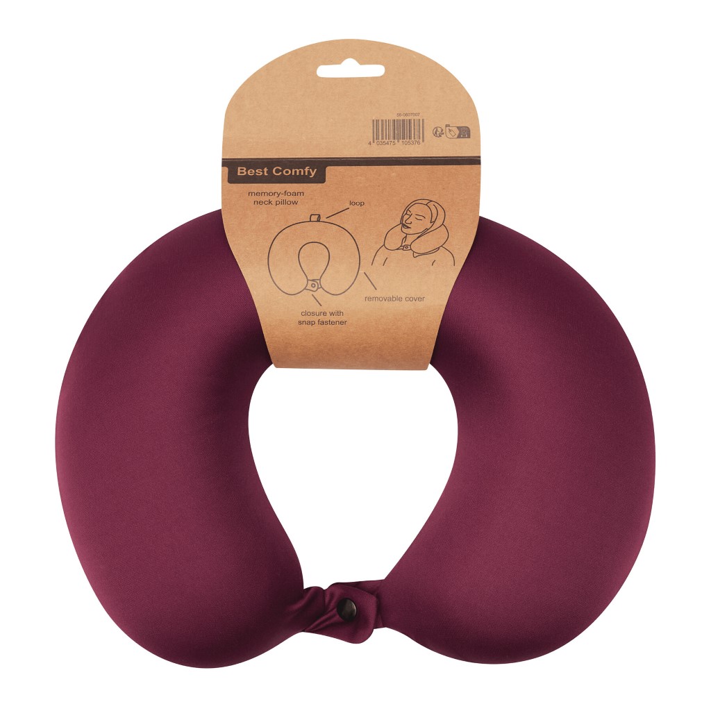 Polštář na krk BEST COMFY: se snímatelným a pratelným žerzejovým potahem, který lze uzavřít pomocí patentky, vyplněný paměťovou pěnou pro optimální pohodlí, poutko pro zavěšení nebo připevnění při přepravě - ideální jako cestovní polštář na spaní, na podporu hlavy, zad a krku