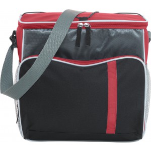 Polyester (600D) chladící taška s předním kapsami na zip, větší kapsa na zip v dobivém materiálu (420D), boční síťované kapsy a elastická šňůra na horním víku.