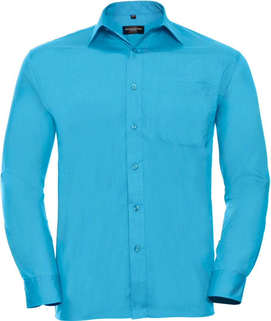 115g/m², 65% polyester, 35% bavlna pánská popelínová košile klasického střihu, má klasický límeček, sedlo se 2 bočními záhyby, náprsní kapsu, rovný spodní lem a náhradní knoflíčky, na rukávech nastavitelné manžety s 1 knoflíčkem, lze prát na 50°