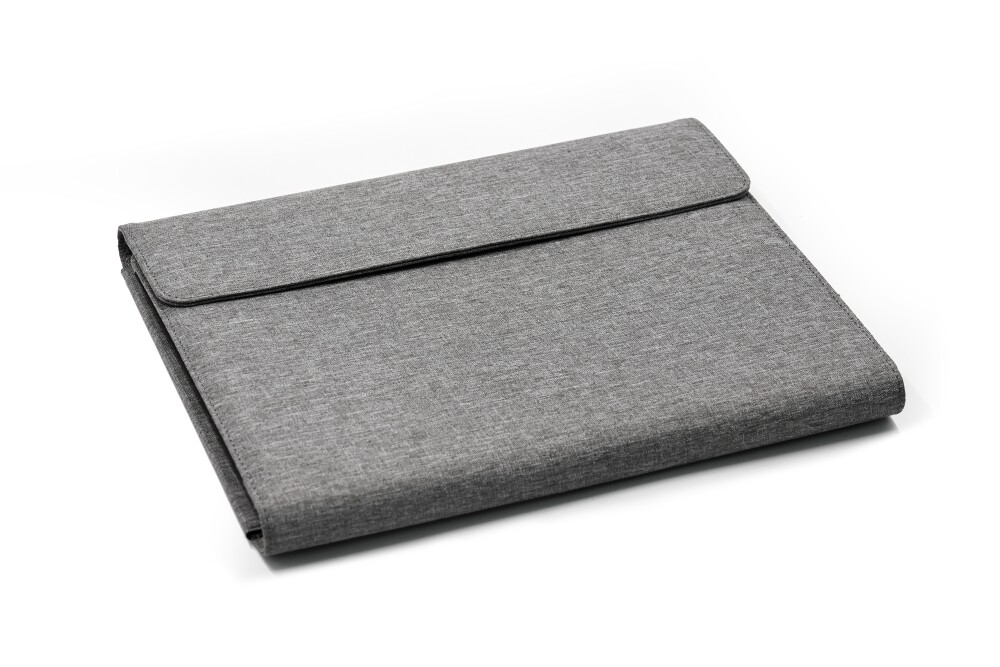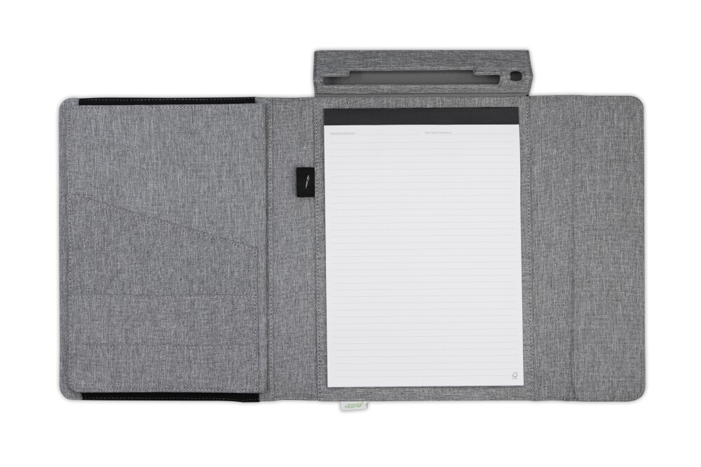 Portfolio, vytvořené z recyklovaných PET lahví a papíru, je prémiovým obchodním foliem, které je ideální pro zaneprázdněné, organizované profesionály. Obsahuje prostor pro poznámkový blok A4, kapsu na tablet/notebook (do 13") a přihrádky na nezbytnosti, jako jsou vizitky. Má magnetický zavírání, pevnou vazbu a skládací organizér na stůl.Rozměry: 26,5 x 32 x 2,5 cm