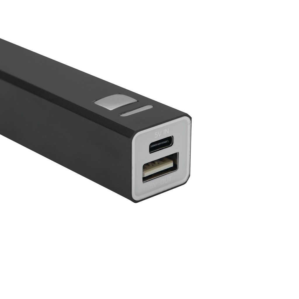 Powerbanka ENDURANCE RECYCLED: vhodná pro smartphony a zařízení napájená z USB, červený LED indikátor nabíjení, modrá LED kontrolka funkcí, vypínač, vstupní napájení: 5 V/1 000 mA, výstupní napájení: 5 V/1 A, kapacita: 2 600 mAh, výkonná lithiová baterie, dvouvrstvý ochranný obvod, včetně kabelu USB s konektorem USB typu C (délka: cca 25 cm), kryt z recyklovaného hliníku