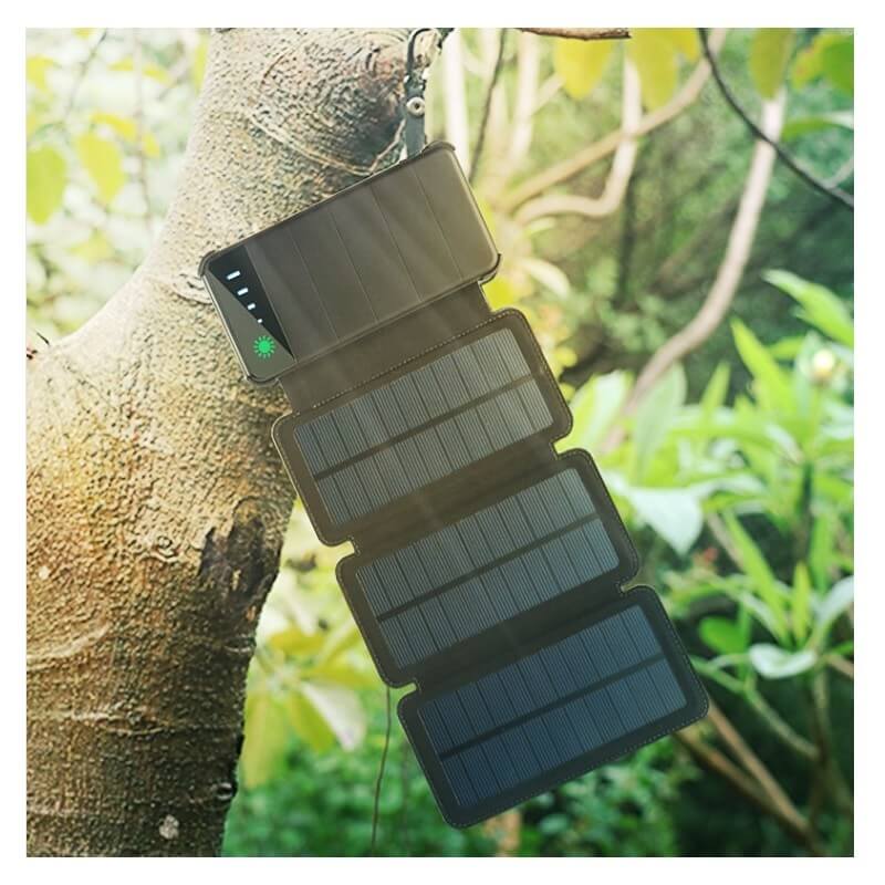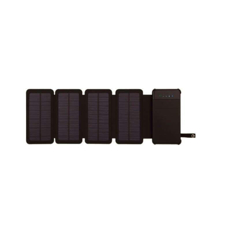 S power bankou se 4 solárními panely maximálně využijete energii ze záření pro nabíjení svého mobilního zařízení. Solární panely jsou chytře poskládané v pouzdře, takže při složení zvětší velikost power banky jen minimálně. Už samotná kapacita externí nabíječky 10000 mAh je dostačující pro několikanásobné nabití mobilního zařízení. Nabíjet ji lze klasicky přes USB i vystavením panelů dennímu světlu. Při aktivaci všech solárních panelů se díky zvýšení příkonu celý proces solárního nabíjení výrazně urychlí. Praktickou power banku lze ze „solárního pouzdra“ vyjmout, a tak ji oceníte na cestách mimo civilizaci i při běžném nabíjení. Pouzdro je možné doplnit potiskem či ražbou podle vlastního přání. Navíc je power banka vybavena výkonnou LED svítilnou.