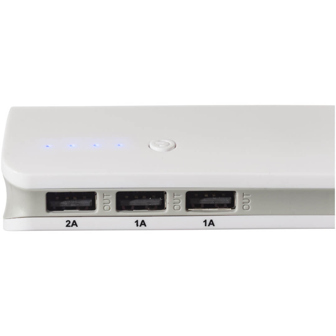 Rezervní powerbanka obsahuje li-ion baterii 10 000 mAh Grade A a svítilnu, kterou lze použít na tmavých místech nebo v noci. Umožní vám nabít až tři přístroje současně s max. výkonem 5V/2,1A (výstup 1: 5V/1A, výstup 2: 5V/1A a výstup 3: 5V/2,1A). 4 modré LED kontrolky ukazují zbývající kapacitu baterie powerbanky. Součástí produktu je USB k dobíjecímu kabelu Micro USB. Dodáváno v bílé dárkové kazetě Avenue. ABS plast.