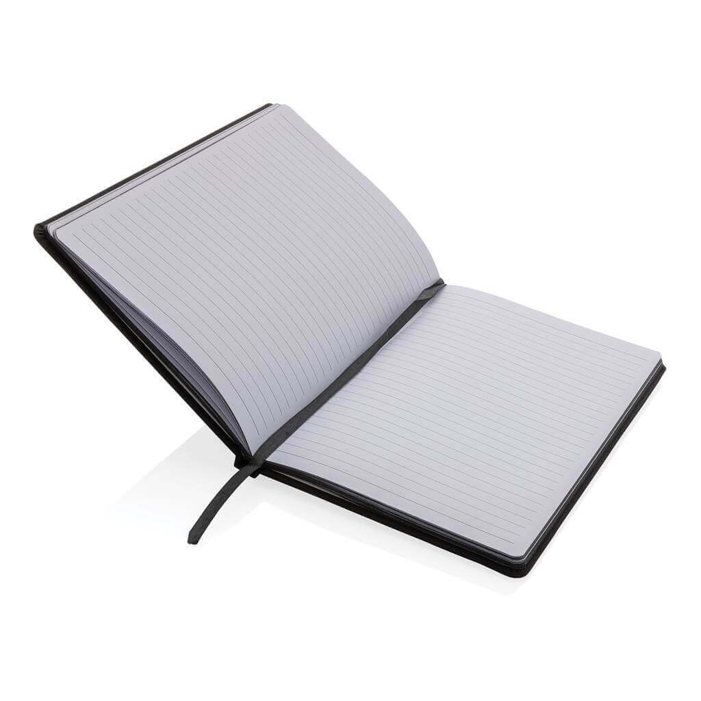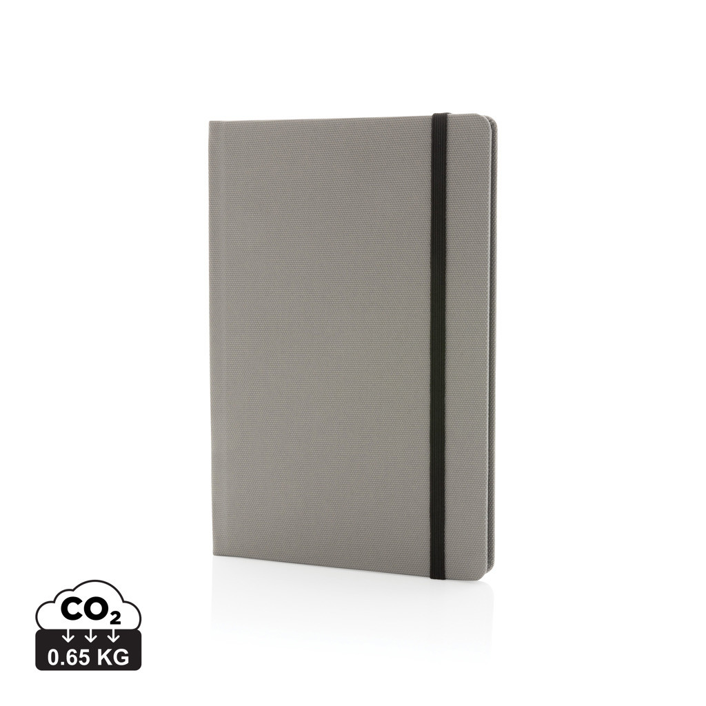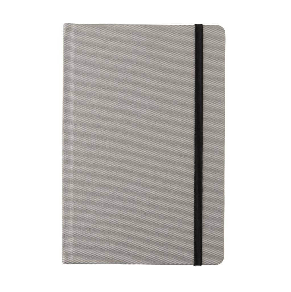 Poznámkový blok formátu A5 vyrobený z GRS recyklovaných materiálů. GRS (Global Recycle Standard) je globální standard, který umožňuje ověřit použití recyklovaného materiálu v produktu napříč celým dodavatelským řetězcem. Celkový podíl recyklátu dle váhy produktu: 68 %. Obsahuje 80 listů/160 stran linkovaného papíru o gramáži 70g/m2.