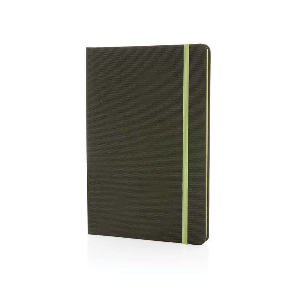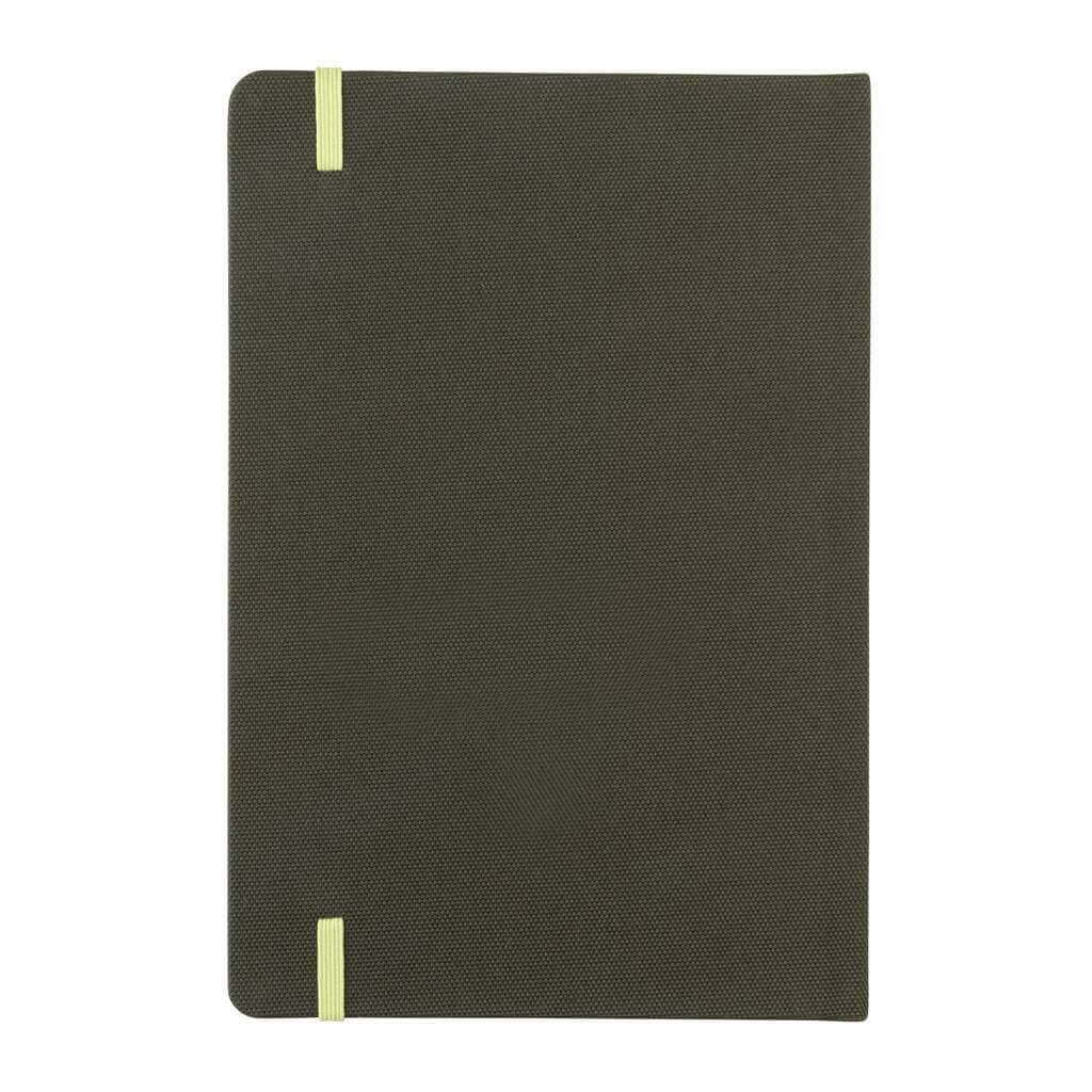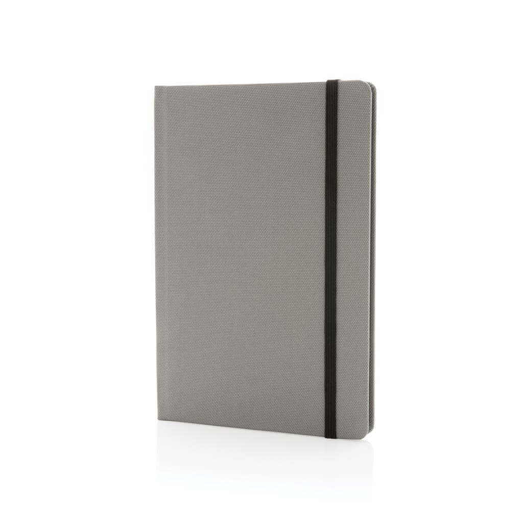 Poznámkový blok formátu A5 vyrobený z GRS recyklovaných materiálů. GRS (Global Recycle Standard) je globální standard, který umožňuje ověřit použití recyklovaného materiálu v produktu napříč celým dodavatelským řetězcem. Celkový podíl recyklátu dle váhy produktu: 68 %. Obsahuje 80 listů/160 stran linkovaného papíru o gramáži 70g/m2.