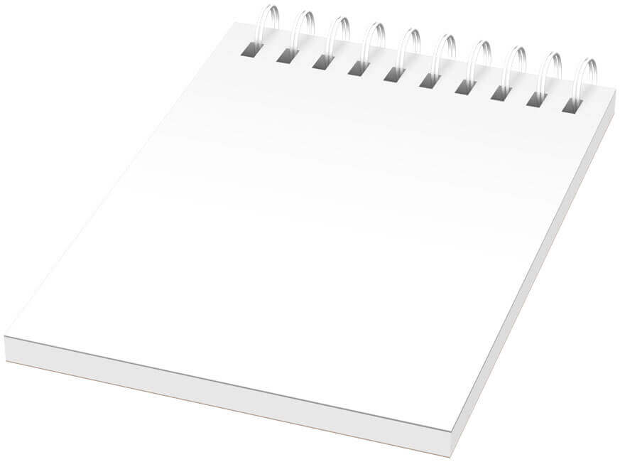 Spirálový poznámkový blok Desk-Mate® A7 Tento poznámkový blok obsahuje černý nebo bílý drát, lesklé desky (250g/m2) a 50 listů (80g/m2) čistého papíru. Dekorace je možná na obálce a na každém listu. Papír, 80 g/m2.