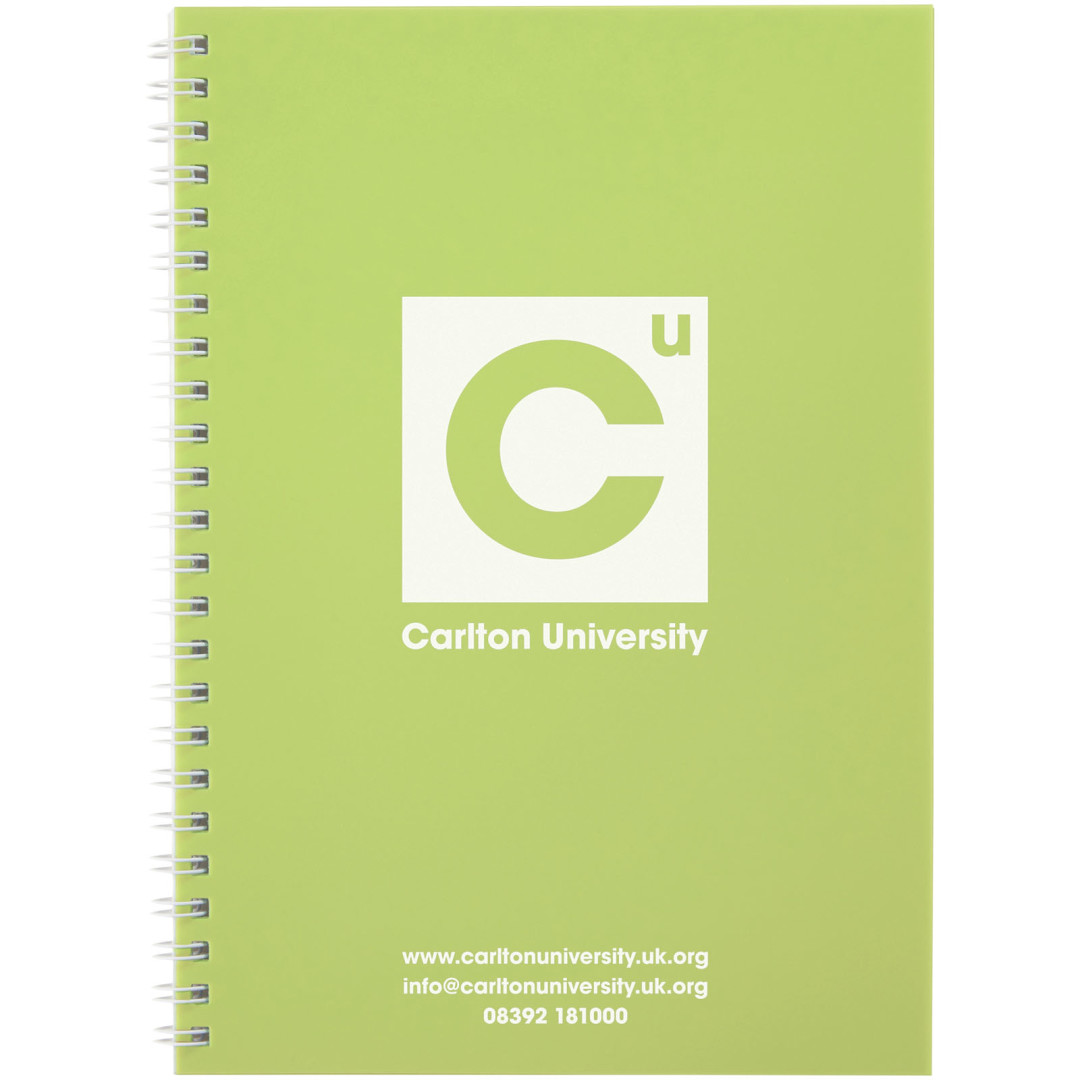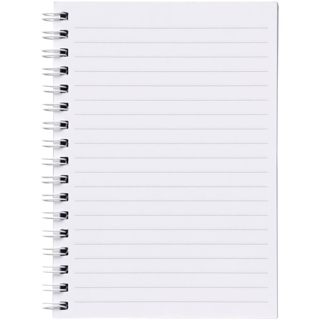 Poznámkový spirálový blok A5 Obsahuje listy čistého papíru 80 g/m2. Standardně se dodávají v balení po 50 listech, dostupné také po 100 listech. Barevný a cenově výhodný poznámkový blok s obálkou z polypropylenu. Papír, 80 g/m2, PP plast.