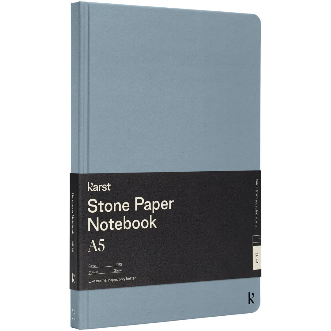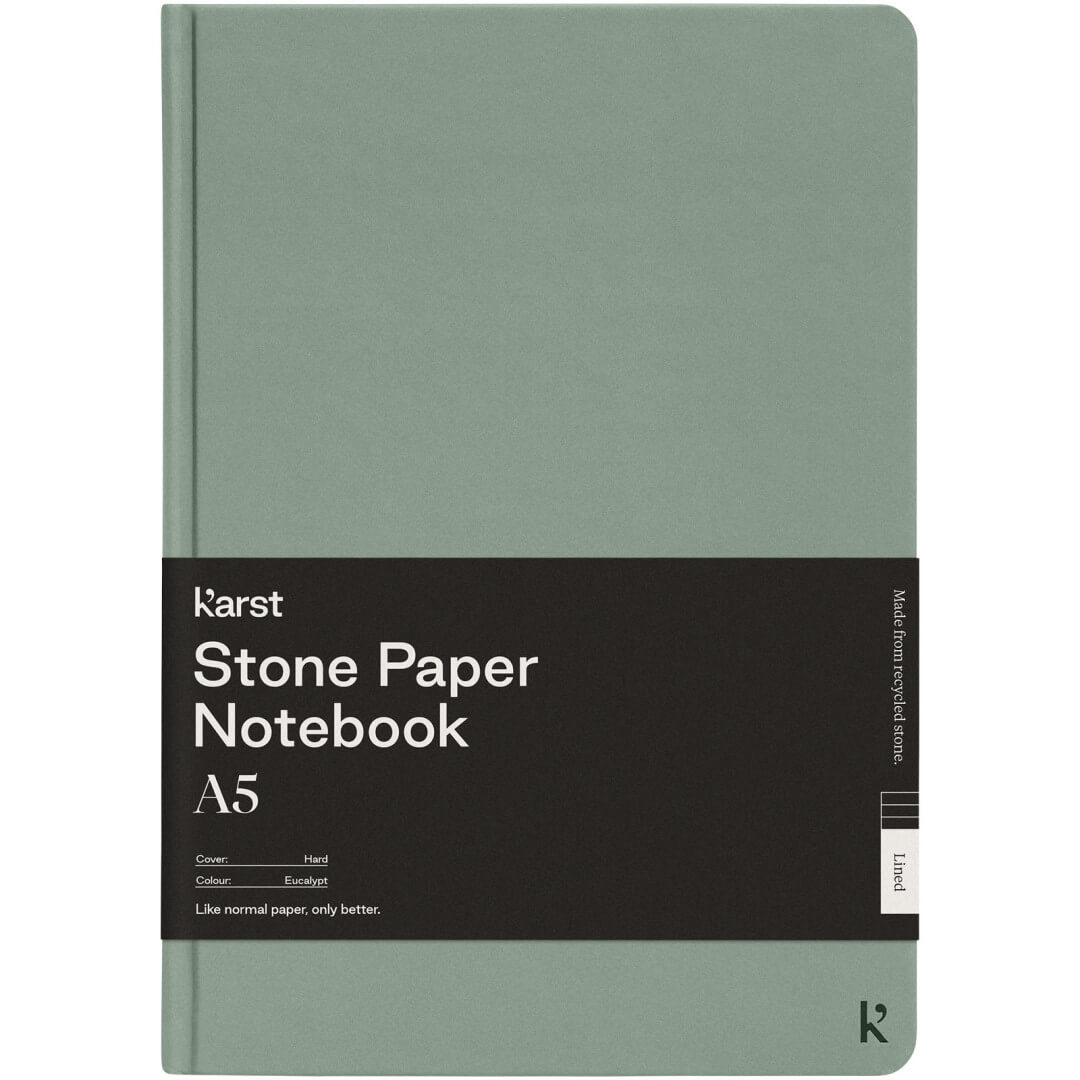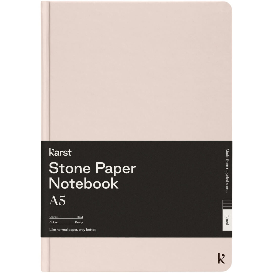 Poznámkový blok velikosti A5 Karst® v pevné vazbě je bestsellerem a potěší každého. Hladká textura stránek a plochá vazba poskytují dostatečný komfort a prostor pro psaní vašich poznámek a nápadů. Má elastickou pásku, která udrží notebook uzavřený, 144 vodotěsných a odolných linkovaných stránek, rozšiřitelnou zadní kapsu pro uložení a oddělovací pásku s tepelně utěsněnou špičkou a zaoblenými rohy.