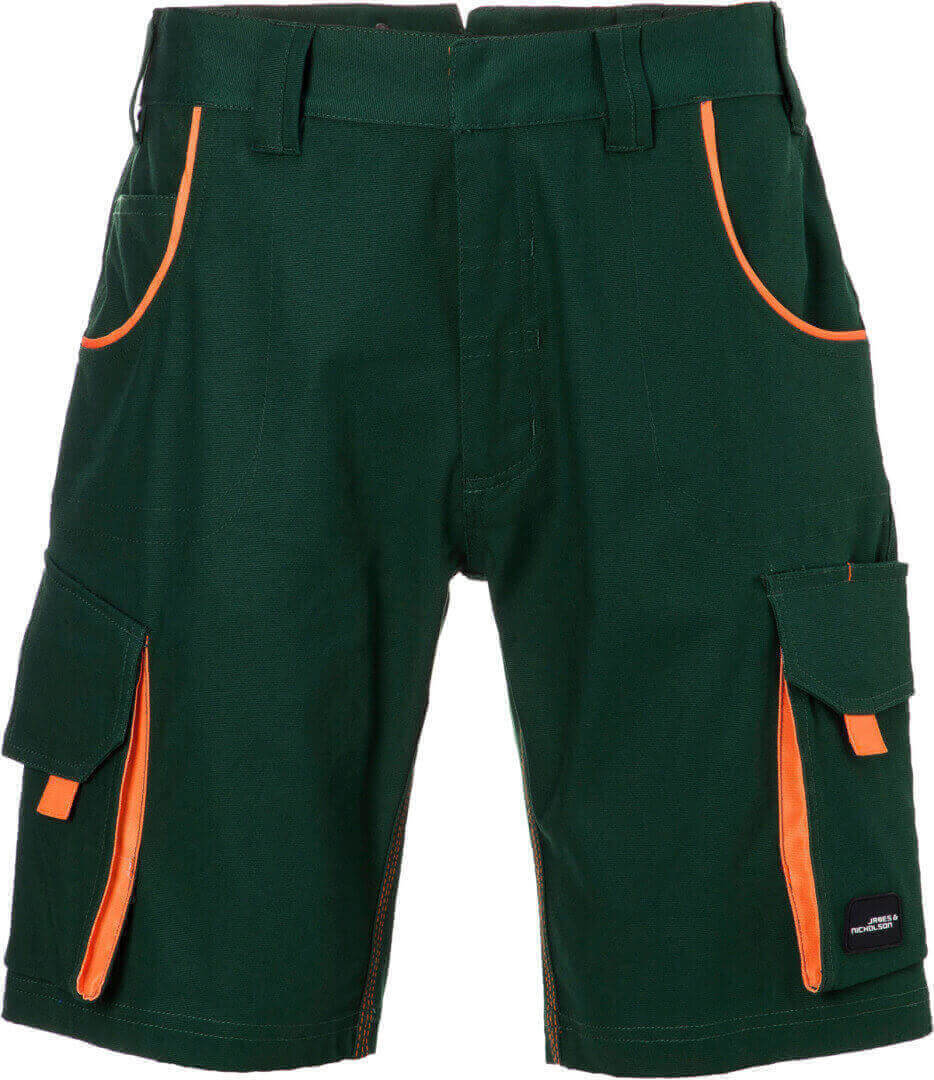 250g/m², 97% bavlna, 3% elastan lehké elastické plátno, pohodlné nošení díky elastanu a ergonomickému střihu, odolné trojité prošití, elastický pás s poutky, kapsa na metr, kapsy na nářadí, držáky na pera a kapsa na mobil, skryté zipy a knoflíky, lze prát na 60° a sušit v sušičce