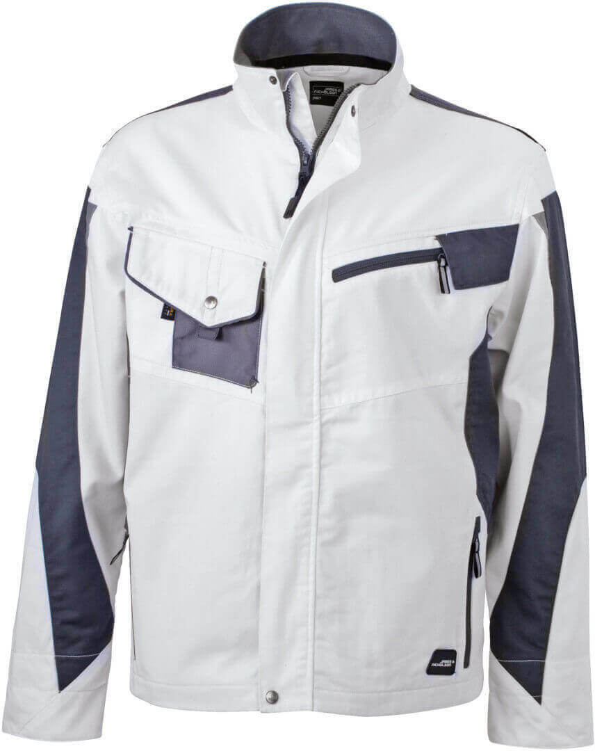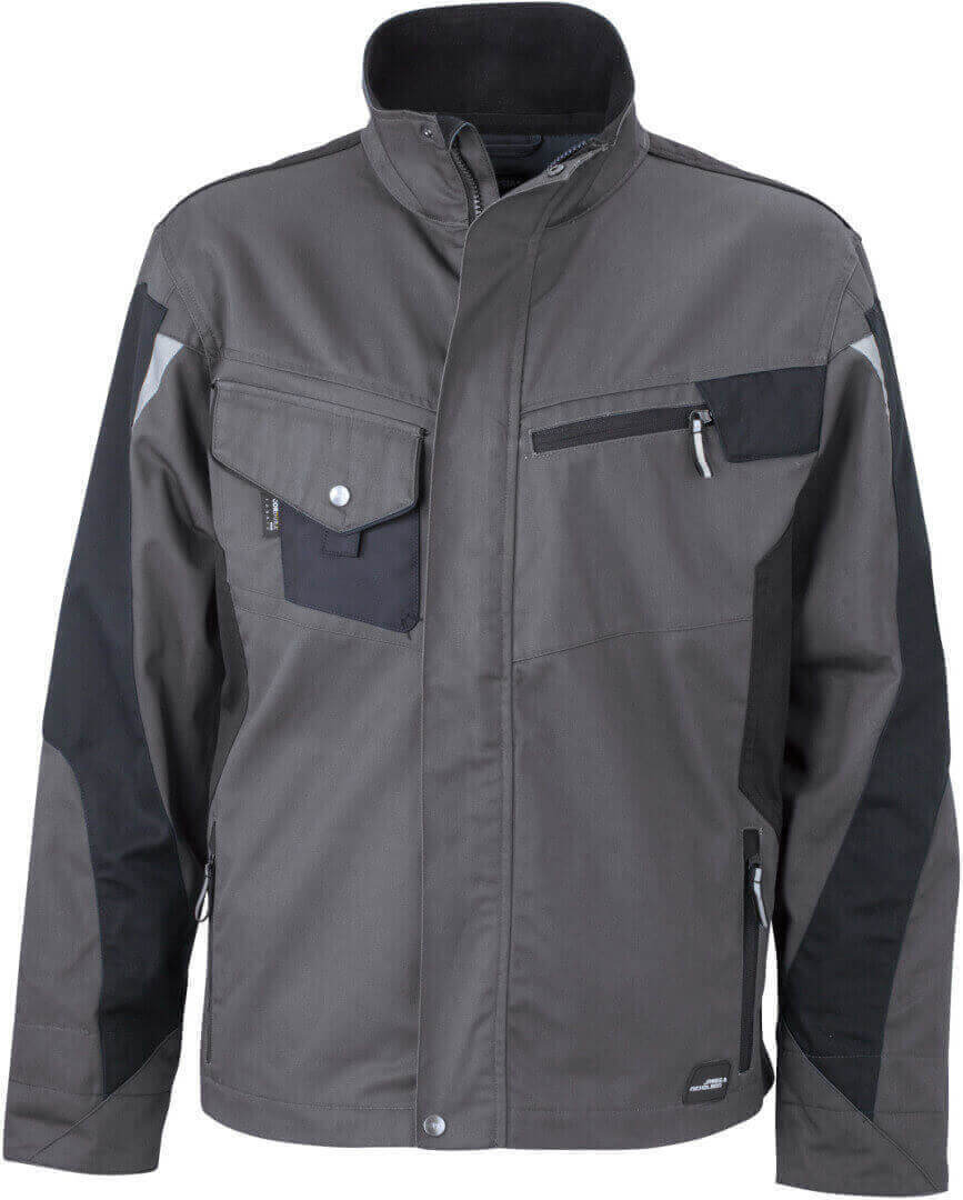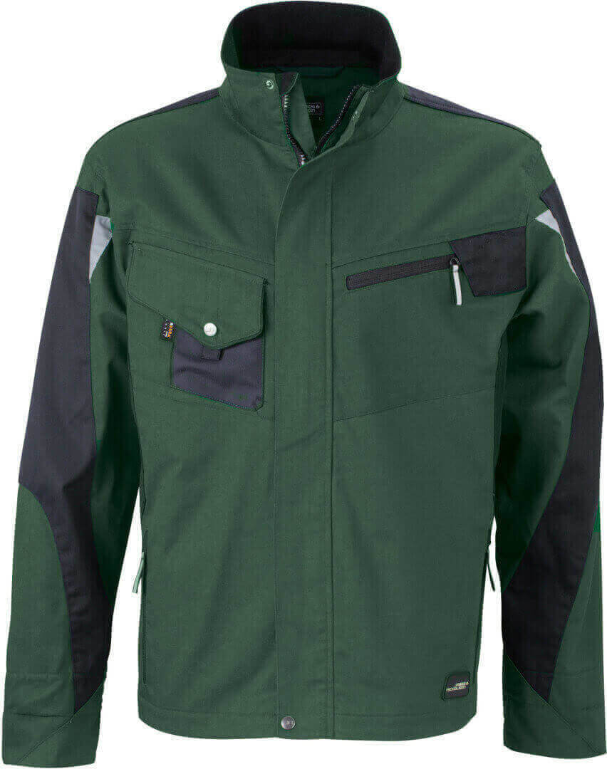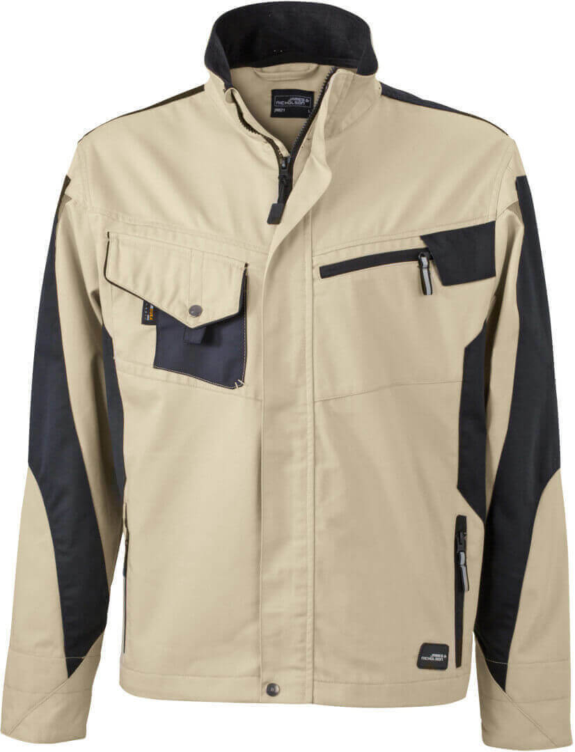 vnější vrstva: 65% polyester, 35% bavlna, vnitřní vložky: 100% polyamid stojáček, náprsní kapsa, vyztužená ramenní část, boční kapsy, krytý přední zip, větrací otvory na zádech, vnitřek límečku a rukávů vyroben z měkkého mikrofleecu, robustní a odolná smíšená tkanina, která je odolná vůči větru