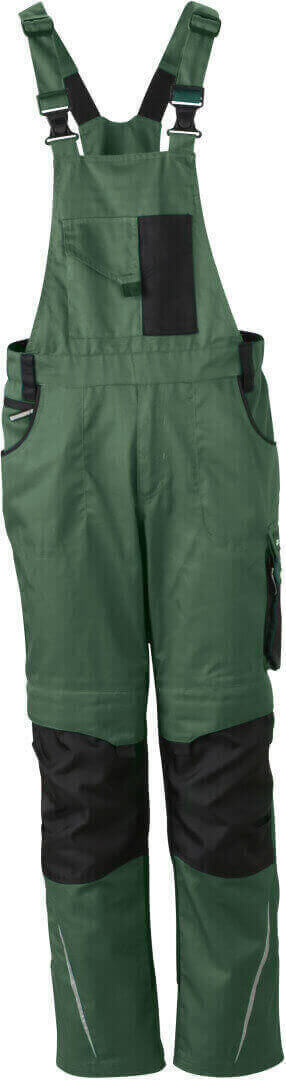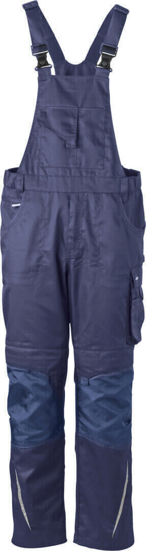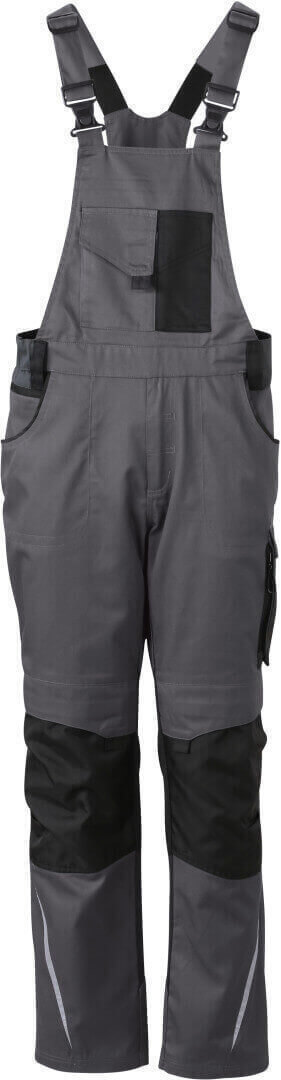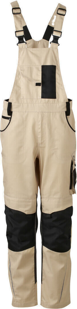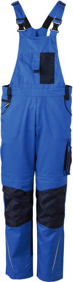 260g/m², 65% polyester, 35% bavlna, lemování: 100% polyamid Cordura® nastavitelný lacl, elastický pas s několika poutky, oblast kolen vyztužená Cordurou®, 2 kapsy na zip a mnoho dalších kapes na různé nástroje, reflexní prvky na přední i zadní straně z vysose kvalitního a odolného materiálu