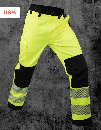 Řada pro firemní identitu | EN ISO 20471:2013/A1:2016, třída 2 | Materiály: STANDARD 100 od OEKO-TEX® | Dva dělené 7cm reflexní pruhy kolem nohavic | Zpevnění na zátěžových bodech | Kapsy na kolenou na chrániče | Poutko na kladivo | D kroužek | Kapsa na skládací metr | Boční kapsa | Částečně elastický pas | Černé kontrastní prvky | Výrobce zaručuje reflexní vlastnosti v souladu s normou EN pro 25 praní při 60 °C. | Vybaveno čárovým kódem EAN | Návod k použití ve 24 úředních jazycích EU | Jednotlivě balené v polyetylenových sáčcích.